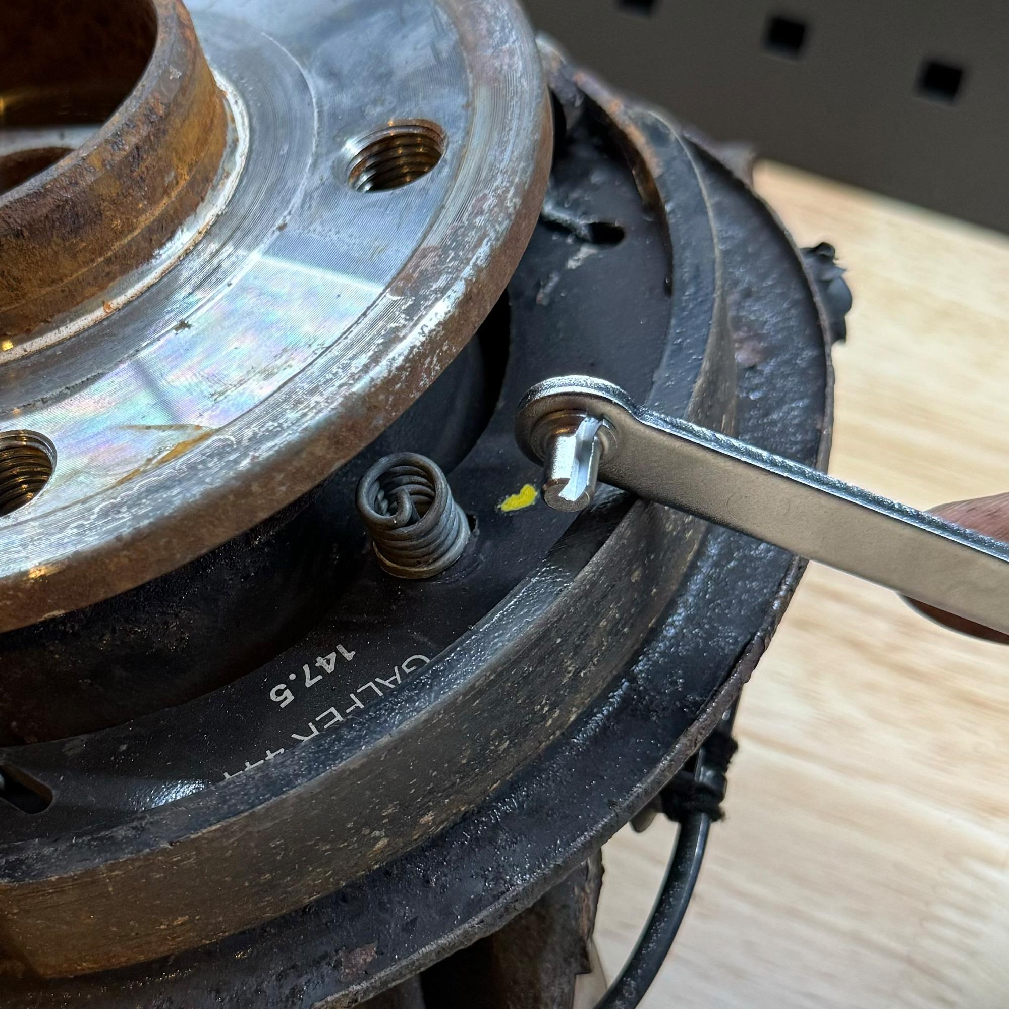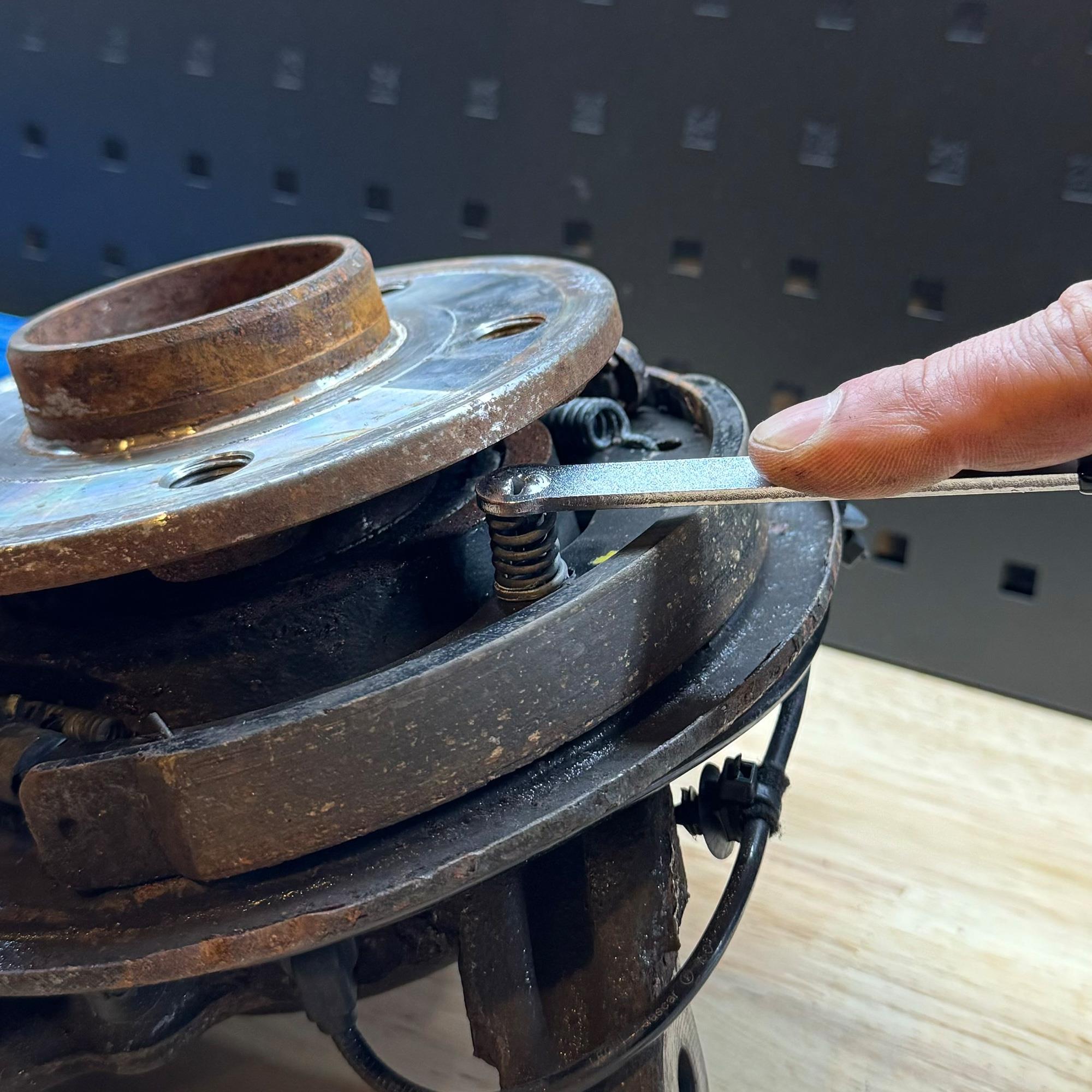 Vorallem bei größeren Radnaben Durchmessern wie z. B. Sprinter, Viano, Vito, V-Klasse, EQV der Modellpalette W638, W639 und W447 verdeckt die Radnabe die Handbremsbacken-Haltefedern.