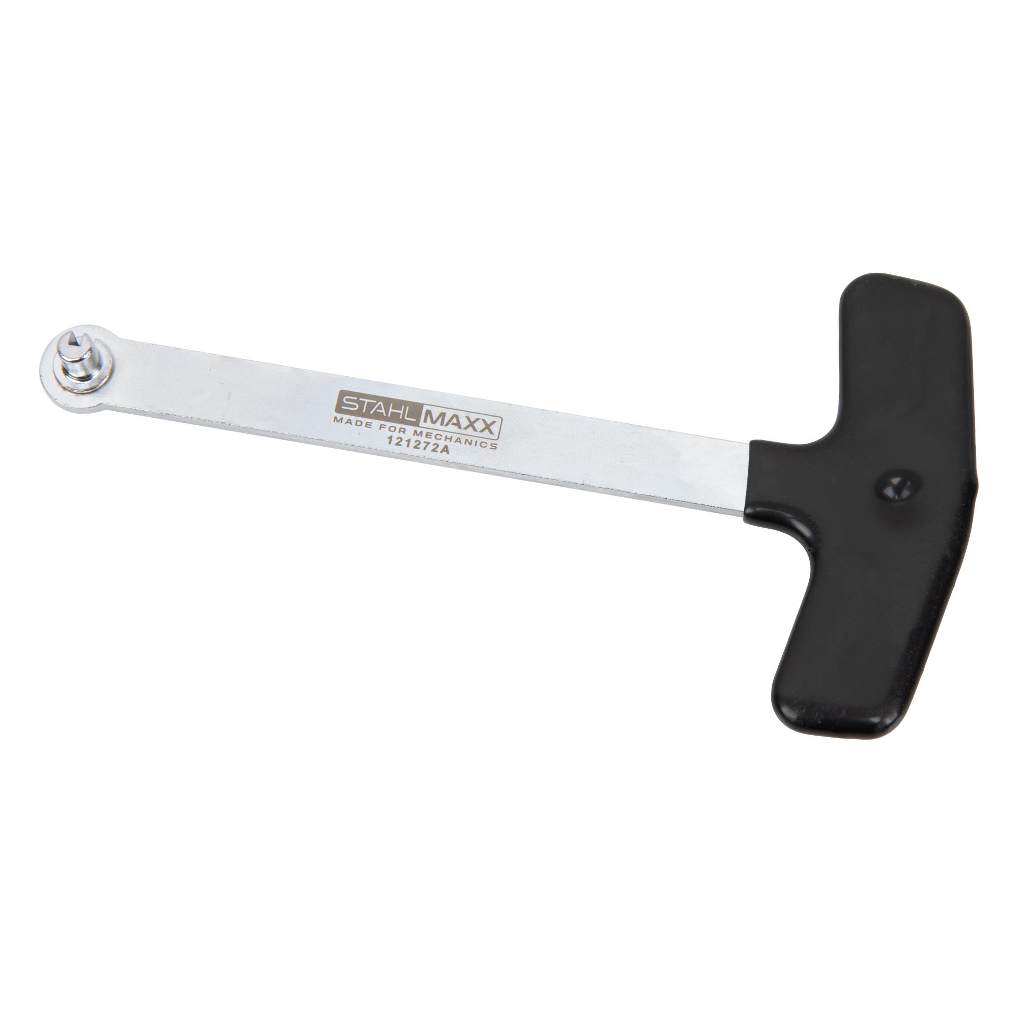 Mit diesem Werkzeug lässt sich die Haltefeder zur Demontage seitlich drücken und in Lösestellung verdrehen sowie zur Montage in die Haltestellung drehen.