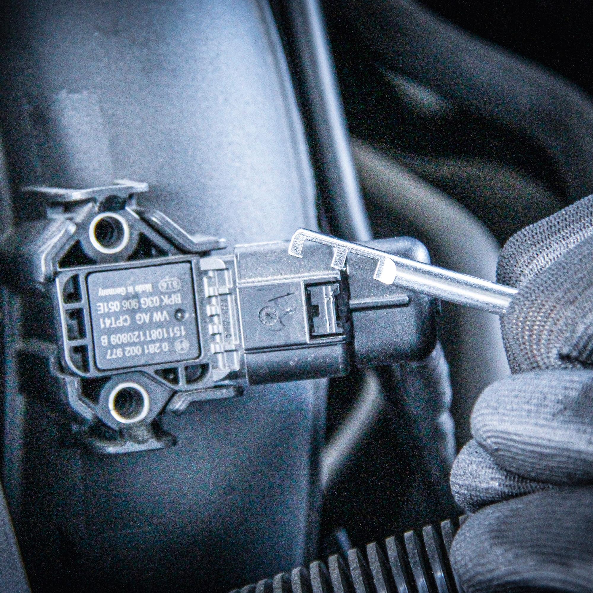 Das Stecker-Entriegelungswerkzeug ermöglicht ein Lösen dieser Stecker Bauart an nahezu allen elektrischen Steckverbindungen wie z. B. an OT-Geber, Luftmassen-Messer (MAF), Unterdruck-Sensor (MAP), Zündspule, Scheinwerfer, Nebelscheinwerfer, Flüssigkeitsstand-Sensor, etc.