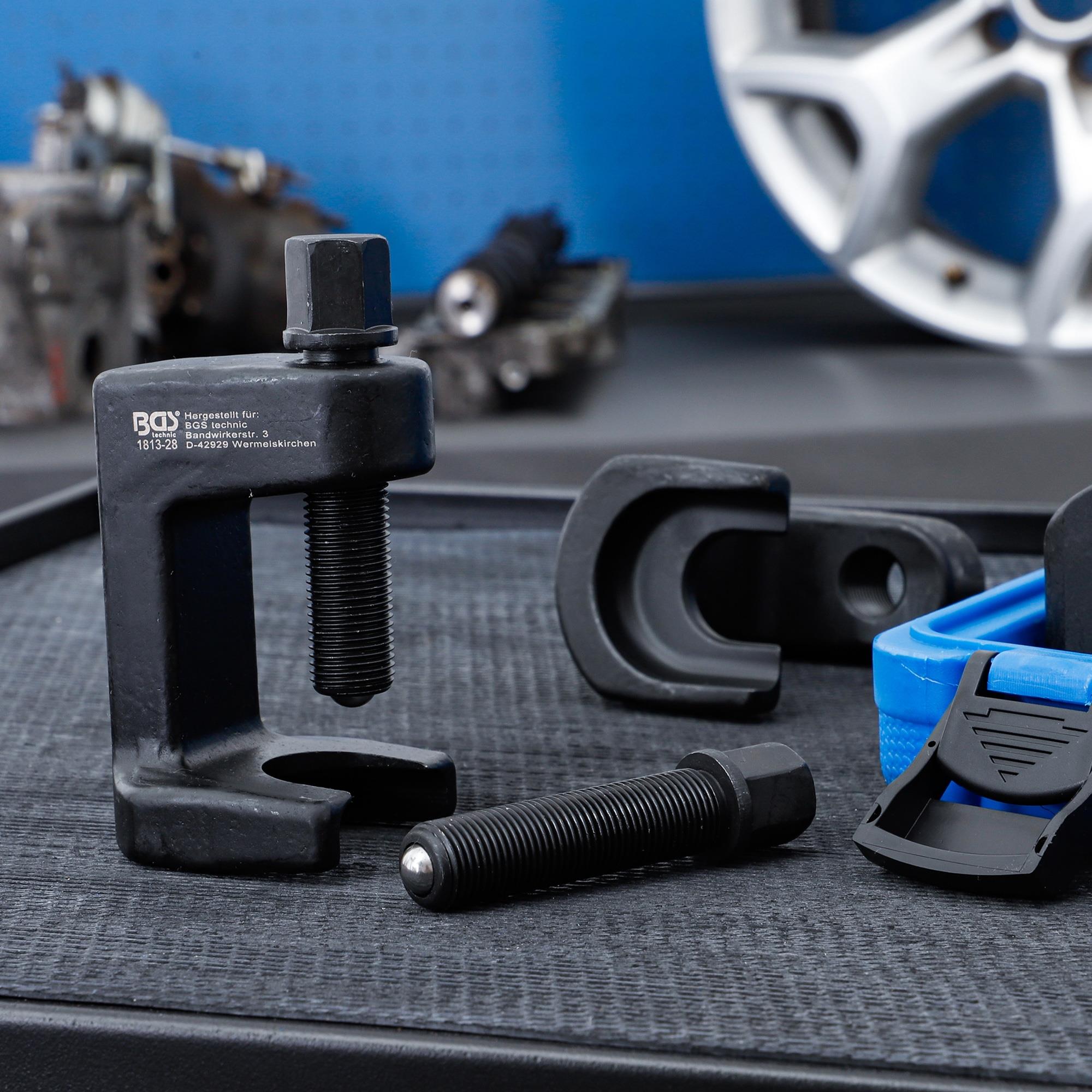 - zum Ausdrücken des Kugelgelenkzapfens / Traggelenkzapfens aus Achsschenkel, Lenkhebel, Stabilisator - speziell zum Einsatz bei engen Platzverhältnissen