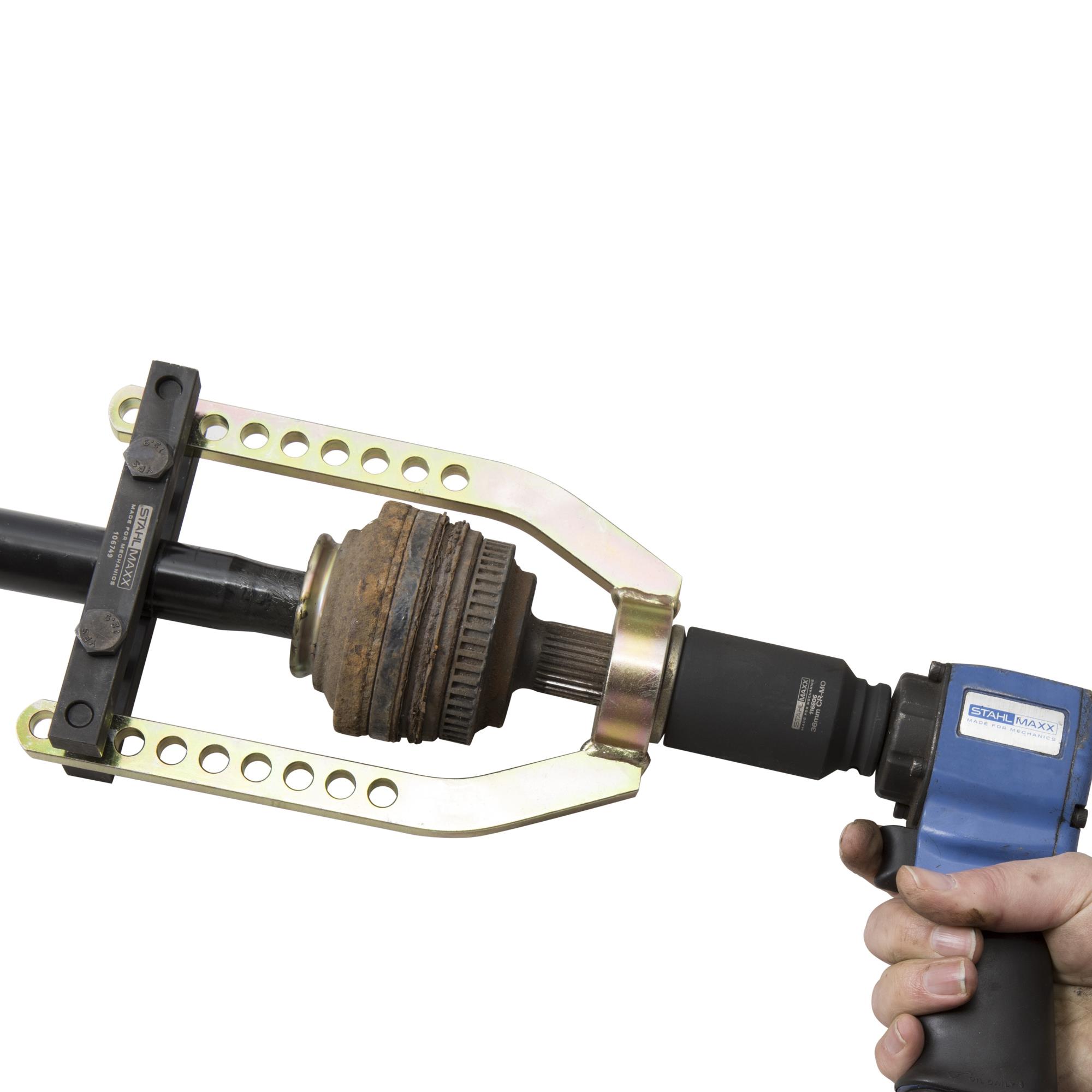 Hat mit diesem Werkzeug bestens geklappt das Gleichlaufgelenk über den vorher nicht demontierbaren Sicherungsring abzuziehen. Bei der späteren Montage genugt ein kräftiger Hammerschlag auf das Gleichlaufgelenk um es über den Sicherungsring auf die Antriebswelle zu bekommen. Es war nicht nötig die komplette Antriebswelle zu demontieren, Getriebeseitig konnte sie am Fahrzeug verbleiben.