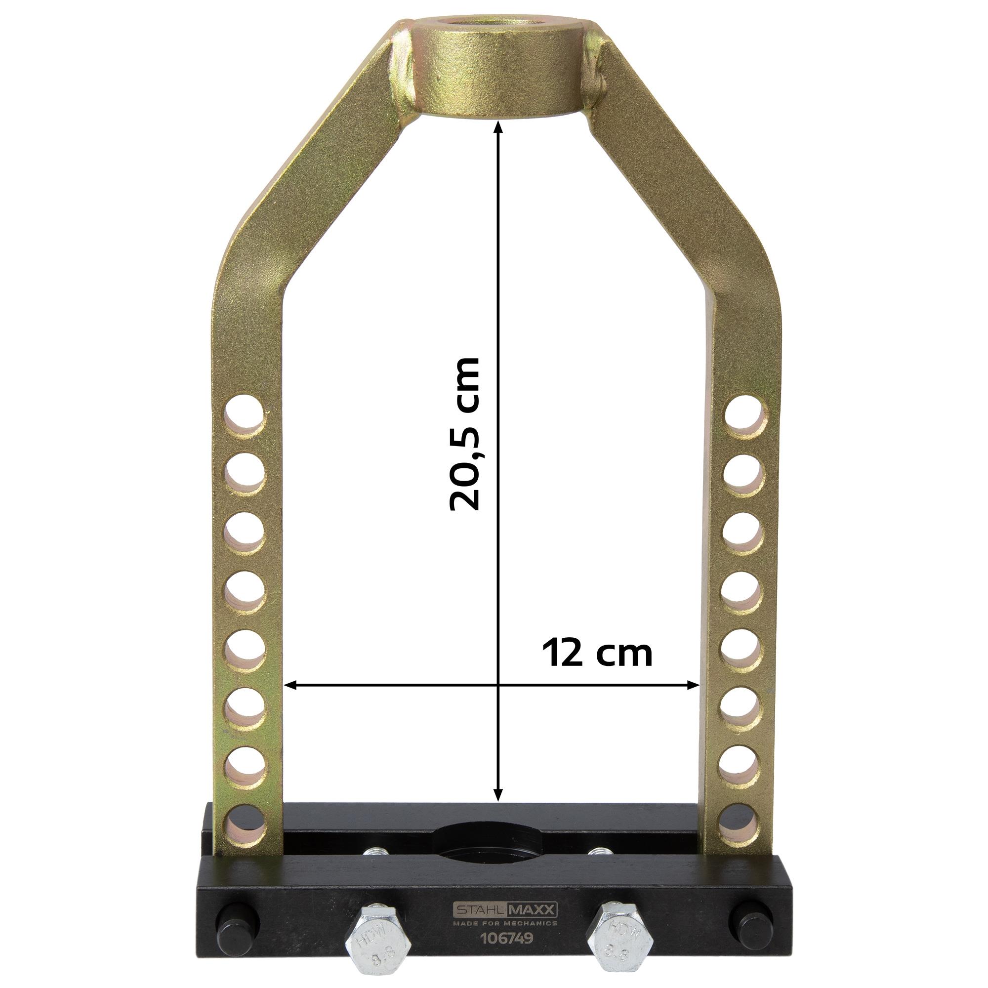 Die beiden Klemmbacken haben zu wenig Klemmwirkung auf der Welle. Dadurch ergibt sich zu wenig "Grip" auf der auszupressenden Welle Die Backen sollten ev. über eine grössere und vor allem "schärfer" profilierte Wellen-Auflagefläche verfügen.