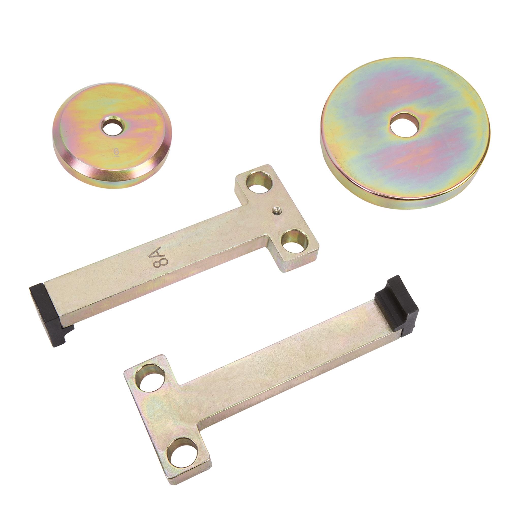 Druckstück-Satz zur De-/Montage von Tonnenlager für BMW 5er (E39) Kombi und 7er (E38). Zu verwenden in Verbindung mit Grundgerät Art.-Nr. 106605 und Art.-Nr. 106609. Dieser Satz ermöglicht den problemlosen Austausch der Hinterachslagerung ohne Ausbau der Hinterachse.