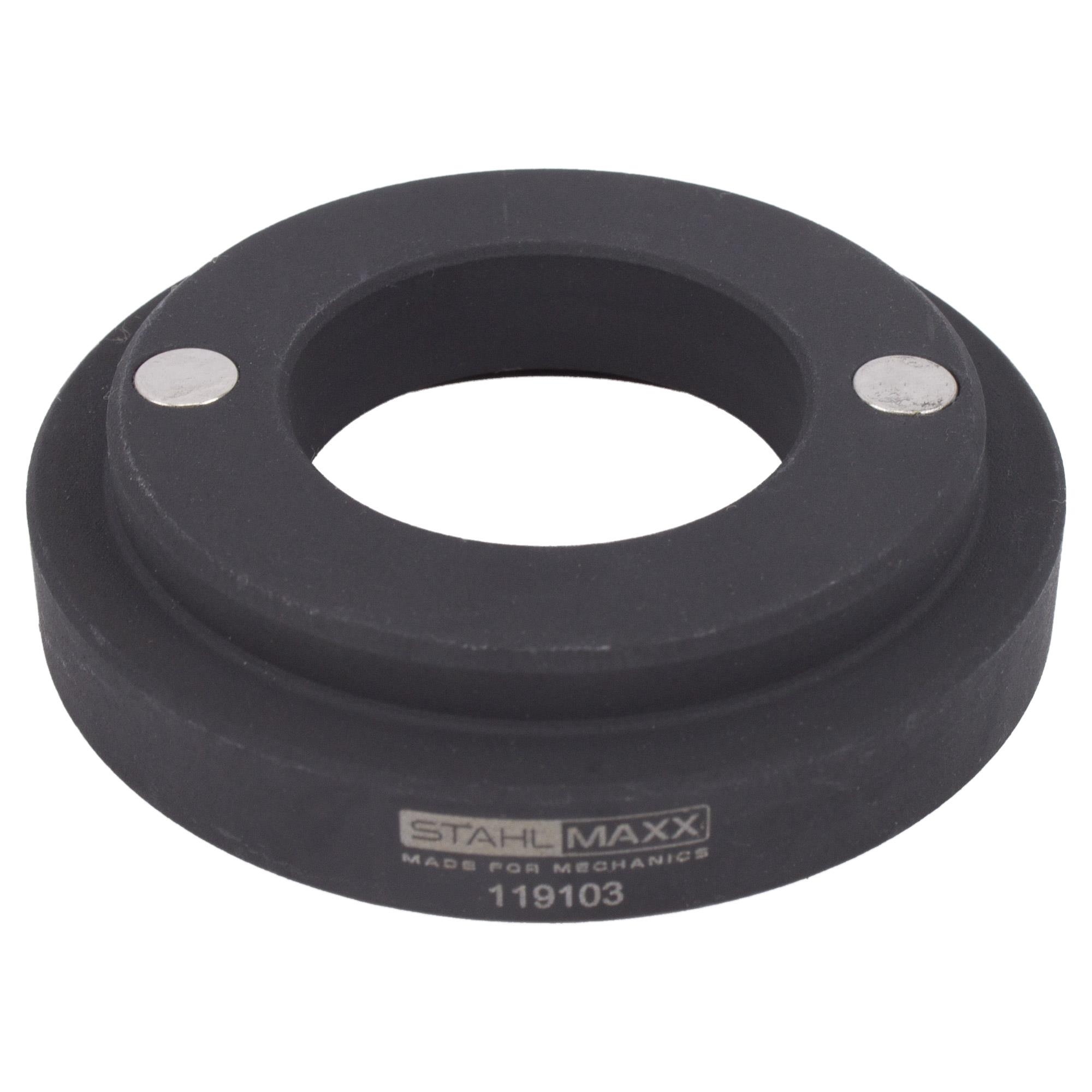 - Magnetische Adapterplatte zur Zentrierung von Zug- und Drückhülsen.
