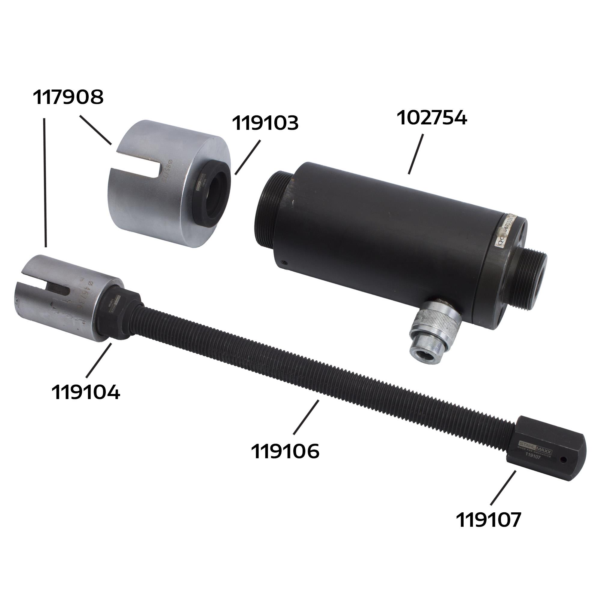 Für den Radlagerwechsel mit Hilfe von Hydraulik, empfehlen wir unseren vollumfänglichen Erweiterungssatz Art.-Nr. 119108, hier sind viele weitere Komponenten enthalten, um ihre Hydraulik zu erweitern.