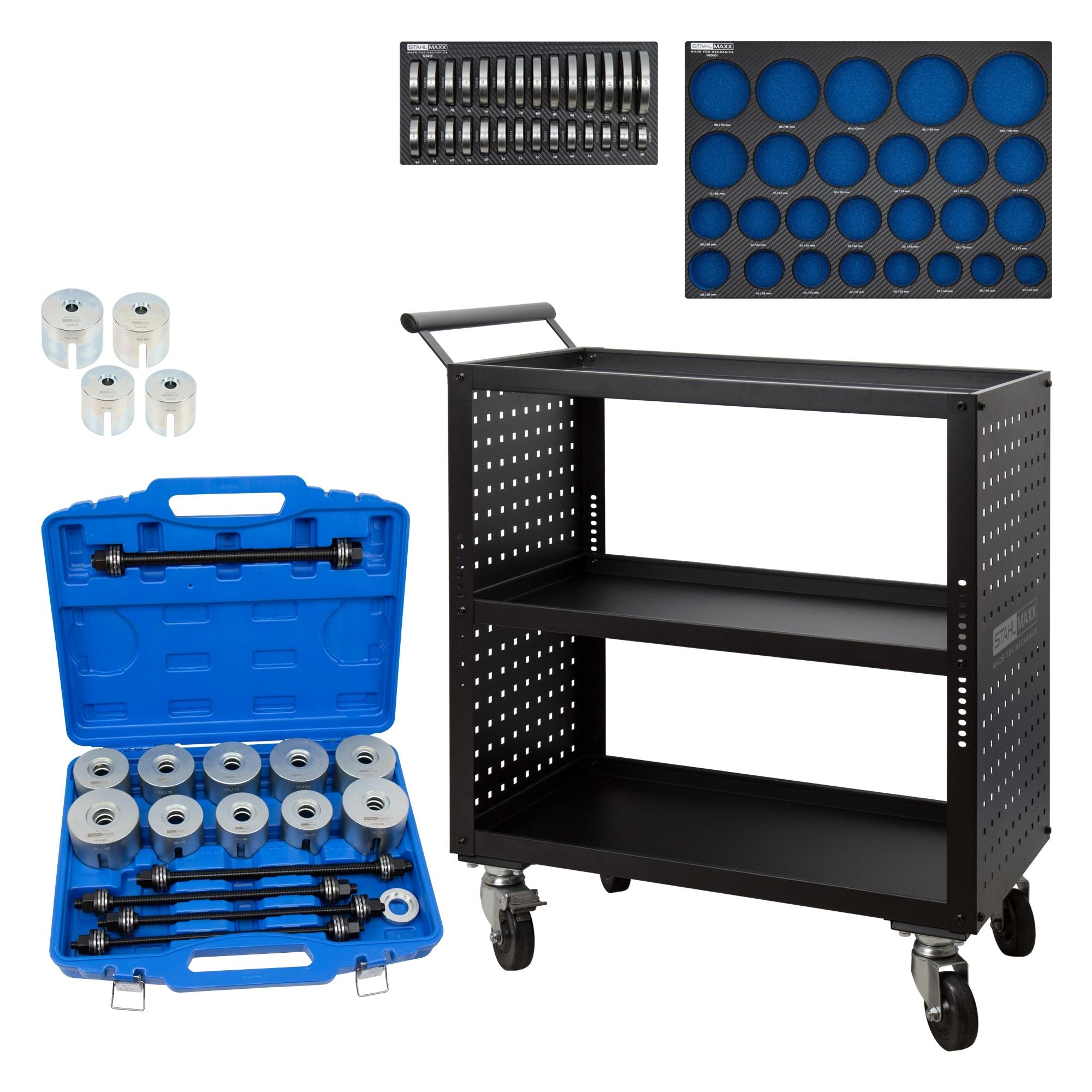"De- & Montagesatz für Radlager, Buchsen & Lagerungen, 61-tlg., universal, mit Service-Werkstattwagen"