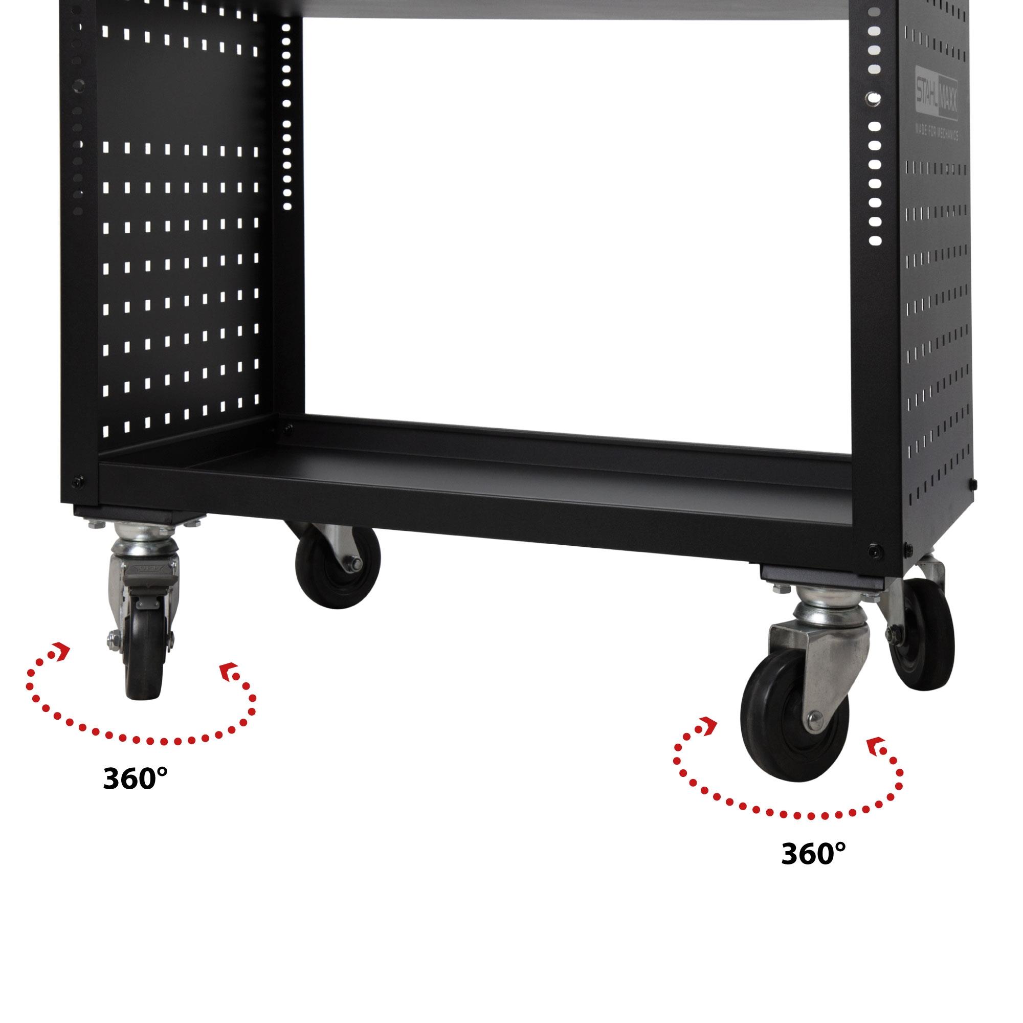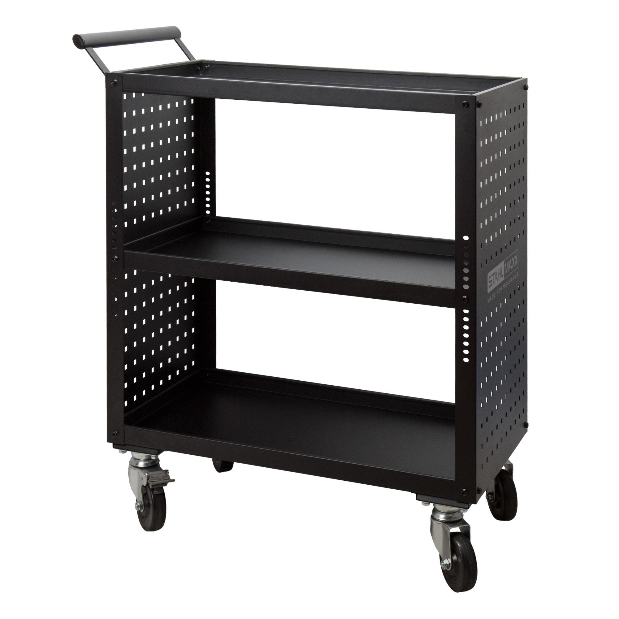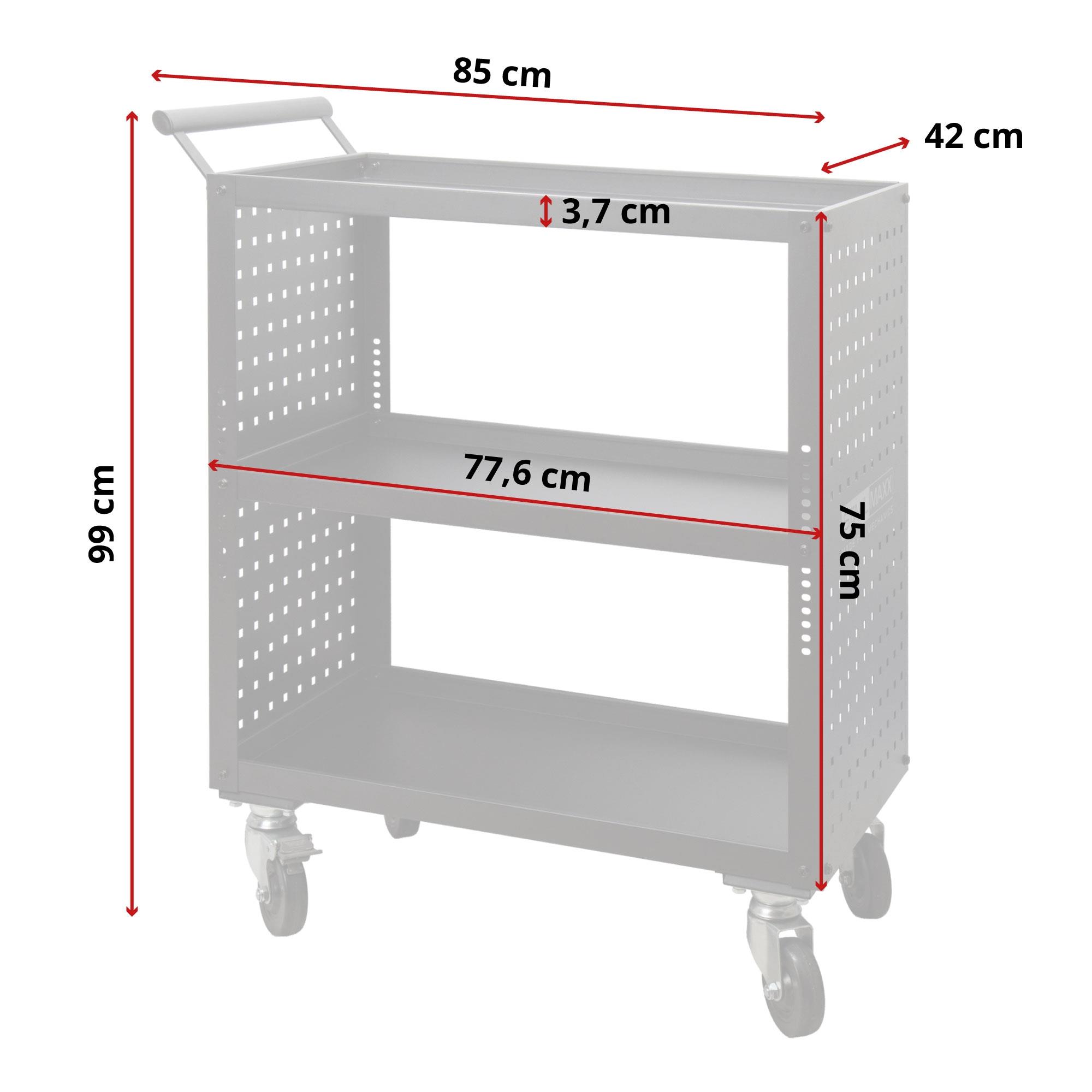1 x Art.-Nr. 122006 Werkstattwagen, Servicewagen, offen, mit Lochwand, 776 x 420 x 750 mm, Tragkraft 3 x 50 kg / 150 kg
