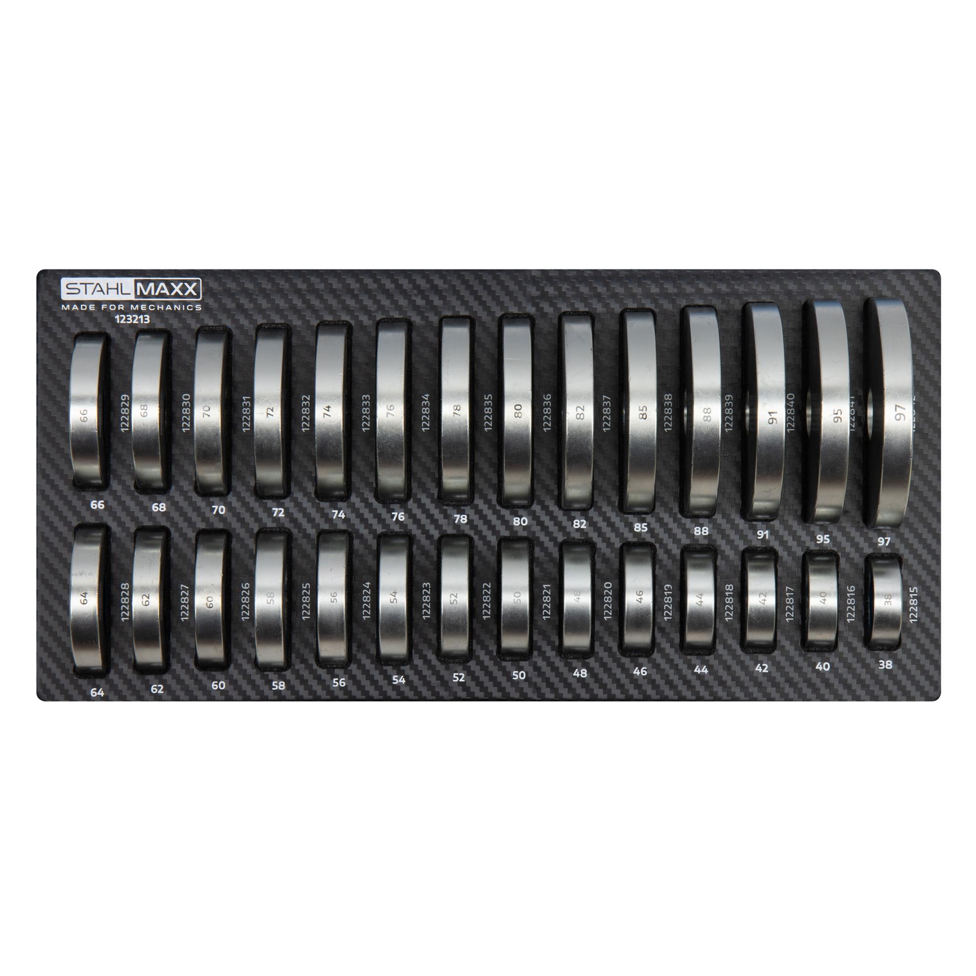 1 x Art.-Nr. 122814 Druckstück-Satz 38–97 mm, flach, 28-tlg. zur Lager, Buchsen, Dichtring De- & Montage