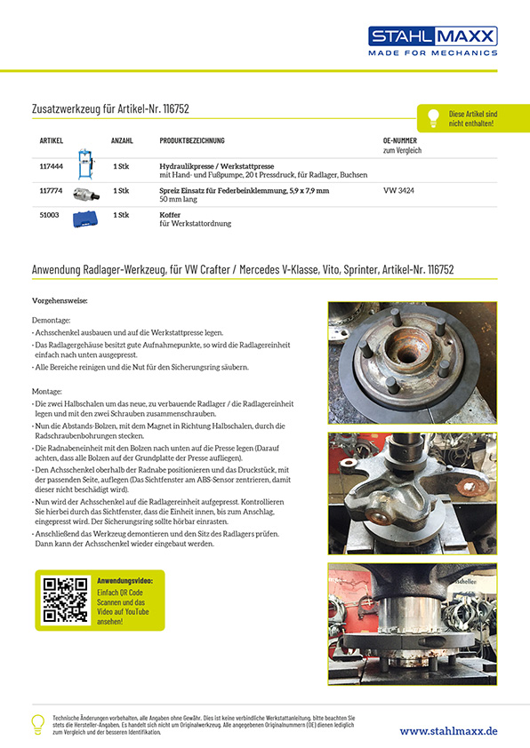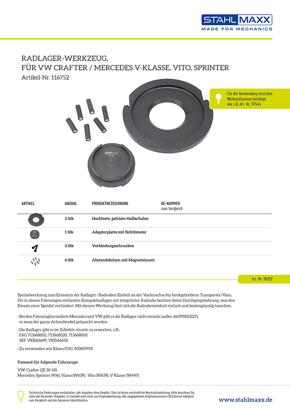 Haben ein Radlager vorne vom Vito mit dem Werkzeug gemacht - hat absolut Problemlos funktioniert !