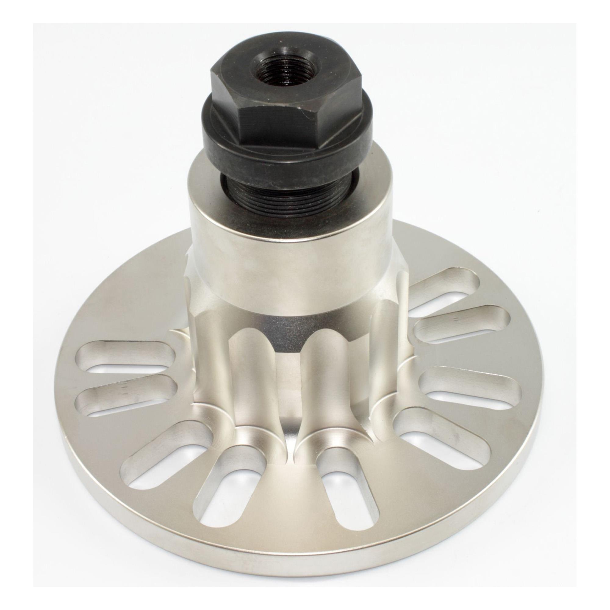 Der mitgelieferte stabile Abziehfuß ist universell für 4- und 5-Loch-Radnaben (mit einem Lochkreis von 98 – 140 mm) einsetzbar. Die extra schwere Ausführung ist ideal für den Einsatz im harten Werkstattalltag.