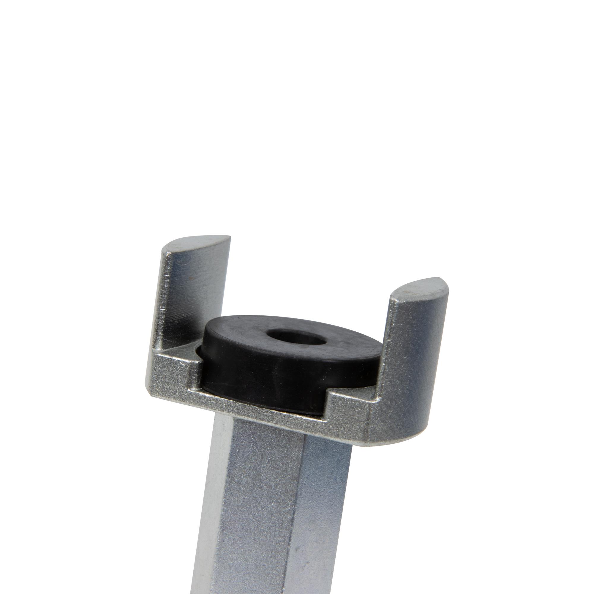 Der Niederdrücker erleichtert den Austausch der Fahrwerksfeder, Stoßdämpfer, Achskörperlager aber auch von Antriebswellen, Manschetten und Kugelgelenken. Zusätzlich besteht erheblich weniger Verletzungs- und Beschädigungsgefahr.