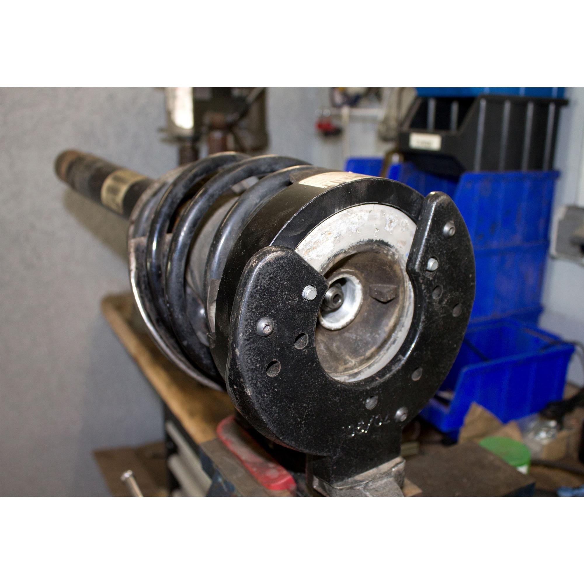 Die Demontage von Federbeinen kann mit Gefahr verbunden sein. Die Demontage der Feder bringt extreme Kräfte ins Spiel, weshalb es zu schweren Unfällen kommen kann, falls man nicht das richtige Werkzeug einsetzt und jede erforderliche Sicherheitsmaßnahme ergreift.