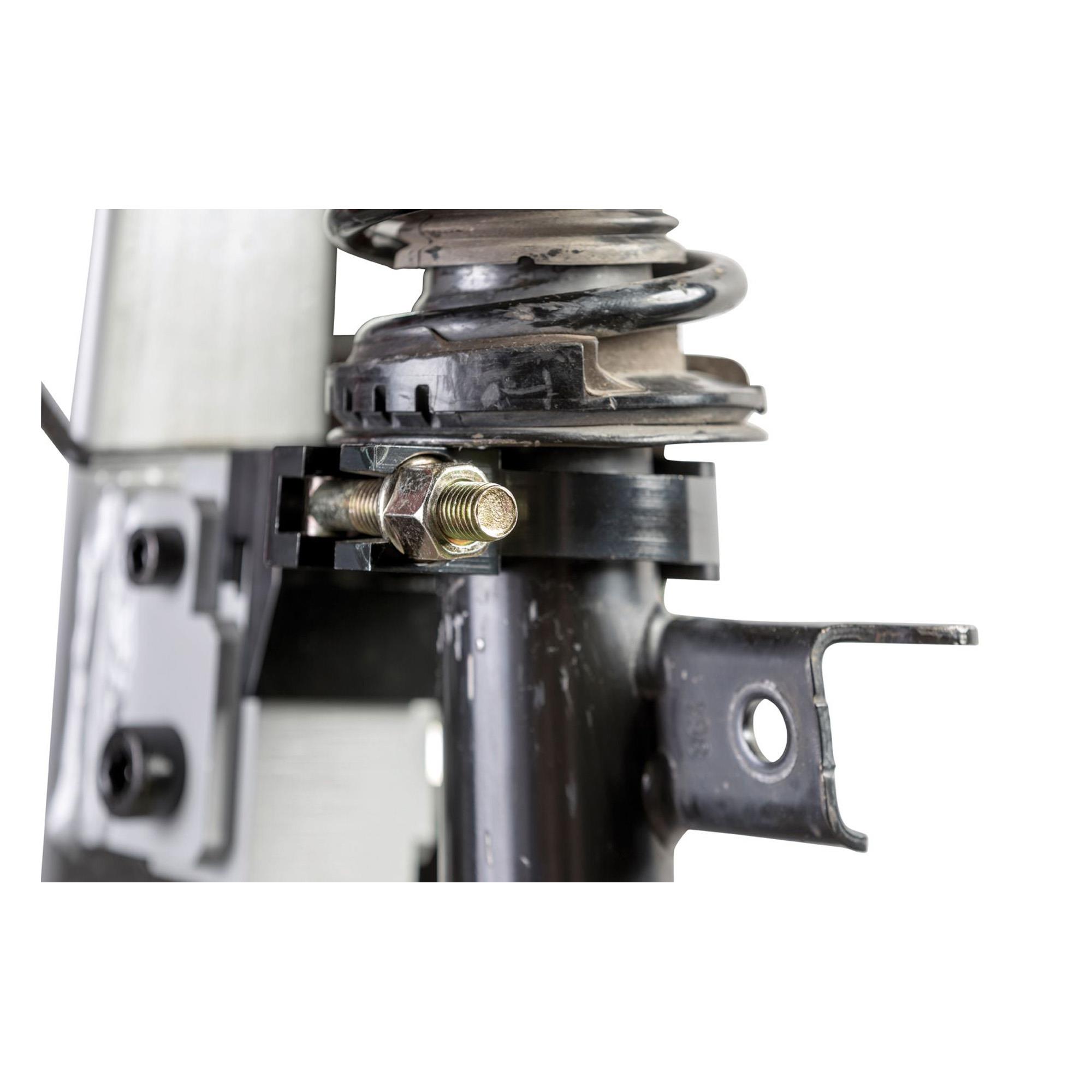 Mit dem Halter am Stoßdämpfer befestigt und der Standardfederhalter am oberen Ende der Feder angesetzt, wird eine bedeutend längere Wanderung erreicht, und damit lässt sich der Stoßdämpfer entspannen.