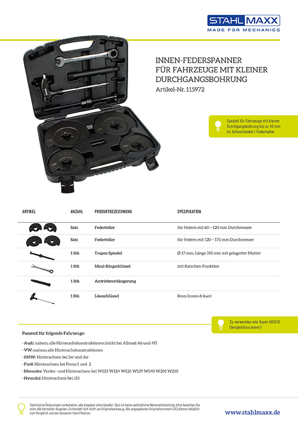 Innen-Federspanner zu verwenden für Fahrzeuge mit einer kleinen Durchgangsbohrung bis zu 40 mm im Achsschenkel / Federhalter