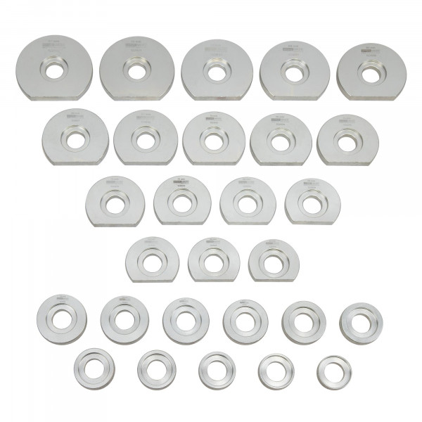 28-teiliges Sortiment mit Druckstücken / Pressscheiben, von 38 bis 97 mm (bis Ø 82 mm in 2 mm Abstufungen).