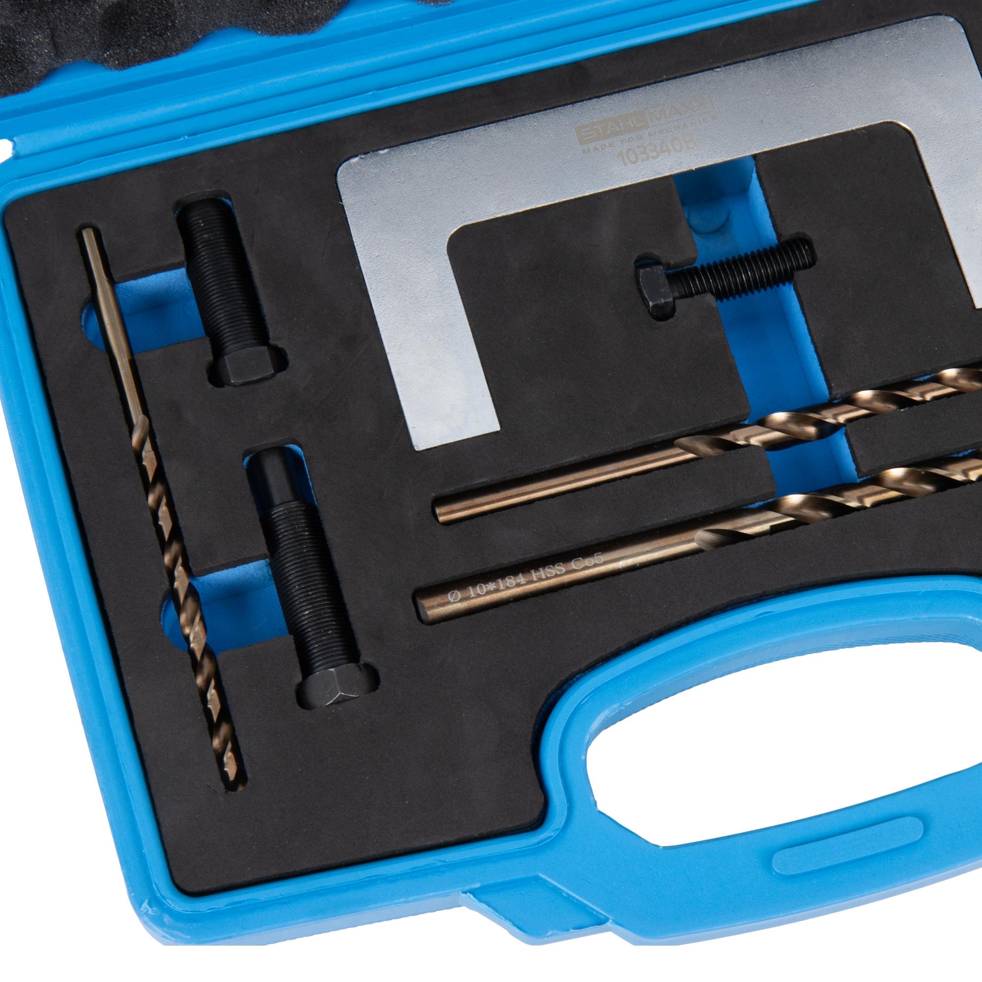 Härtefälle können komplett auf 10 mm Ø ausgebohrt werden, was durch das 8,5 mm Kernloch keine Bohrführung mehr erfordert.