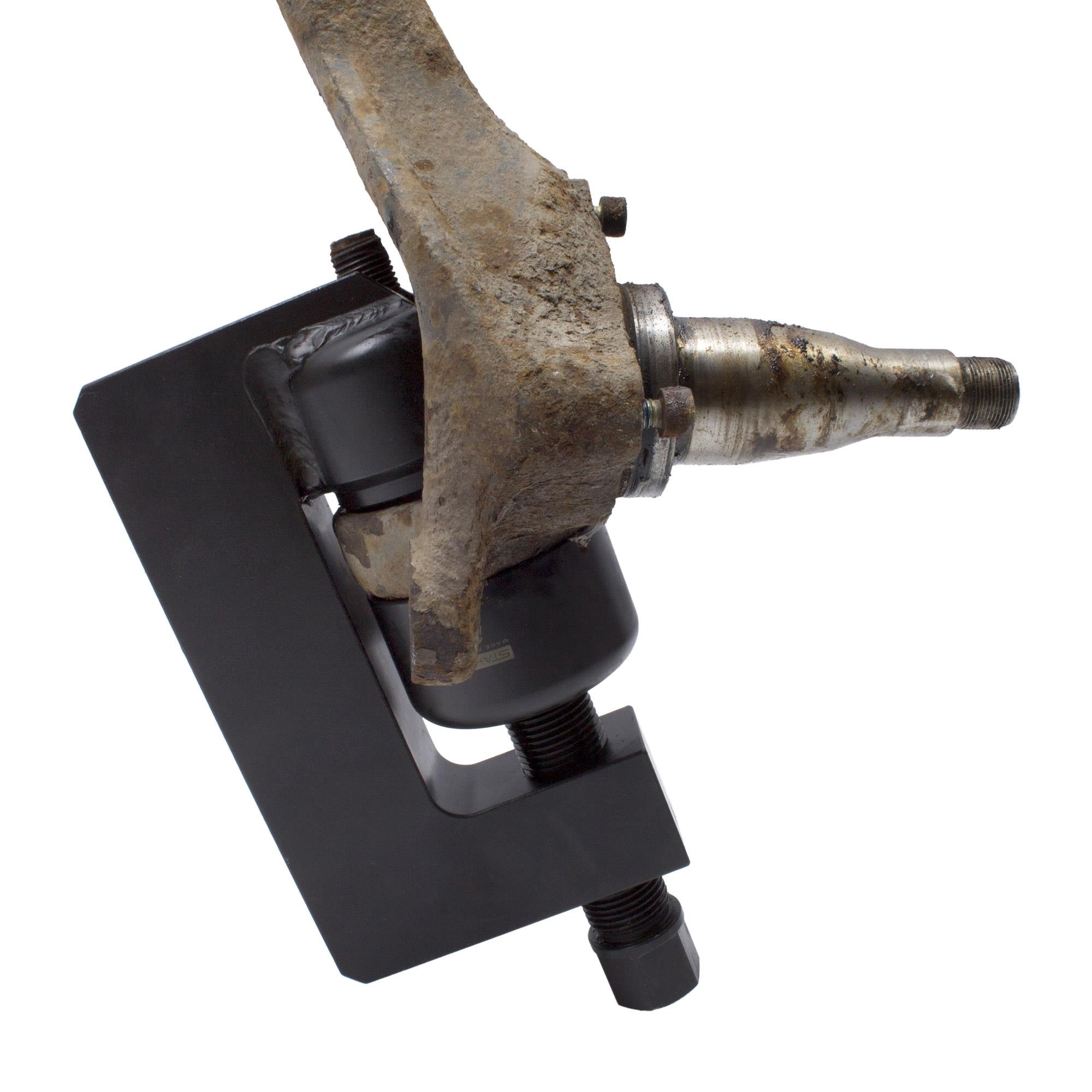 Mithilfe der Einpressvorrichtung entfällt der sonst übliche Aus- und Einbau des Achsschenkels sowie die Verwendung einer Hydraulikpresse.