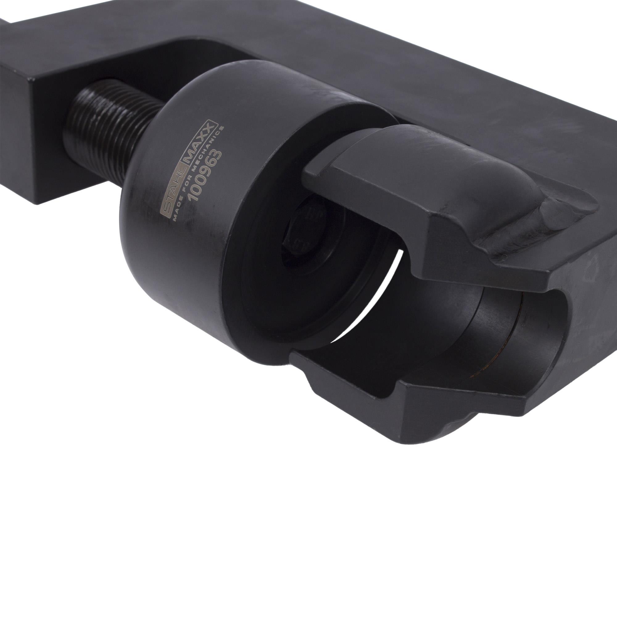 Dieses Spezialwerkzeug ist das perfekte Hilfsmittel beim Tausch der Traggelenke im eingebauten Zustand. Die Demontage erfolgt mittels ausschlagen.