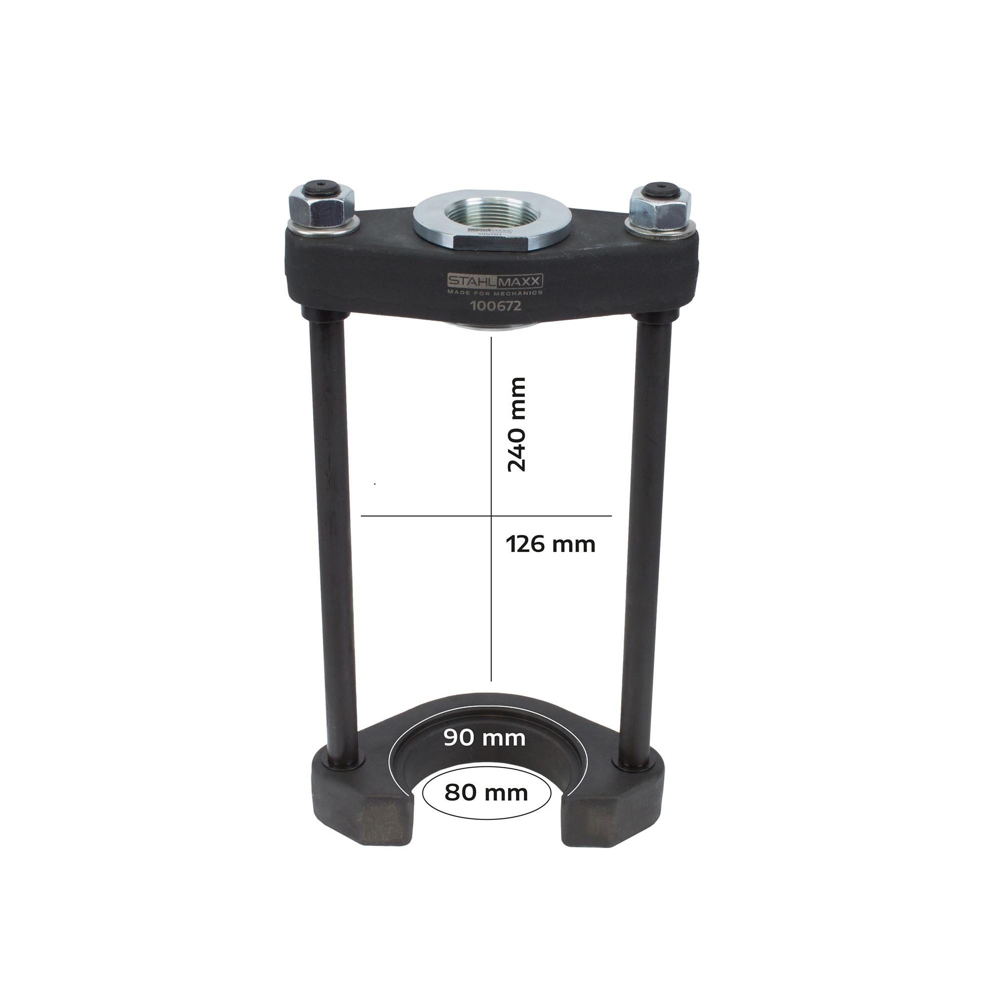 Pressrahmen für schnellen und fachgerechten Lagerwechsel an Vorder- und Hinterachse. Durch einzeln erhältliche Druckstücke ist das Gerät besonders wirtschaftlich und universell je nach Bedarf erweiterbar.