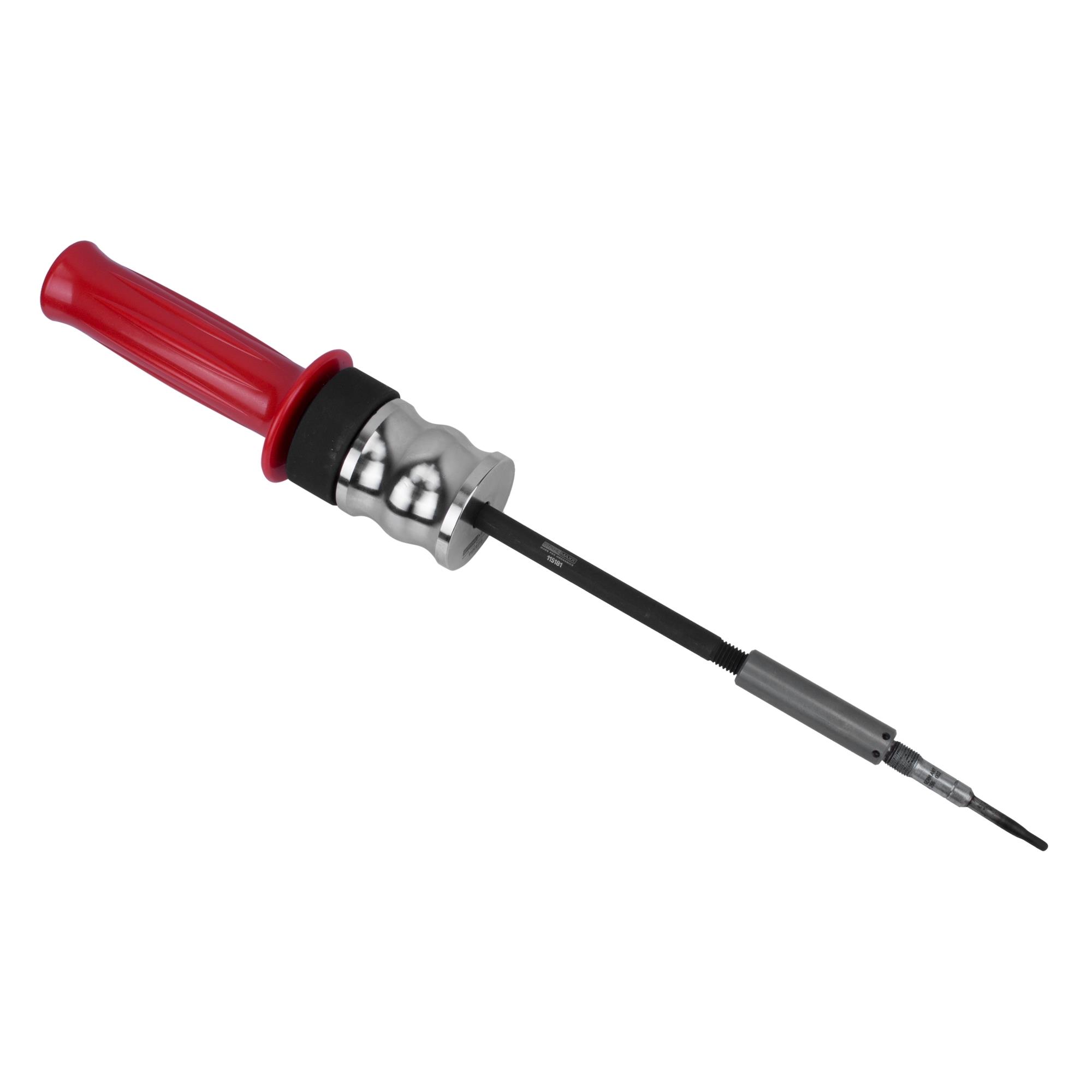 Wir haben ein Werkzeug entwickelt, das es ermöglicht, festsitzende oder durchdrehende Glühkerzen mit beschädigtem Gewinde aus dem Glühkerzenschacht zu demontieren. Aufgrund der schmalen Bauform des Werkzeuges können auch eng und tiefsitzende Glühkerzen problemlos entfernt werden.