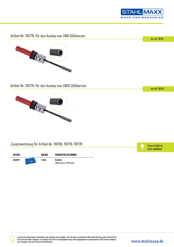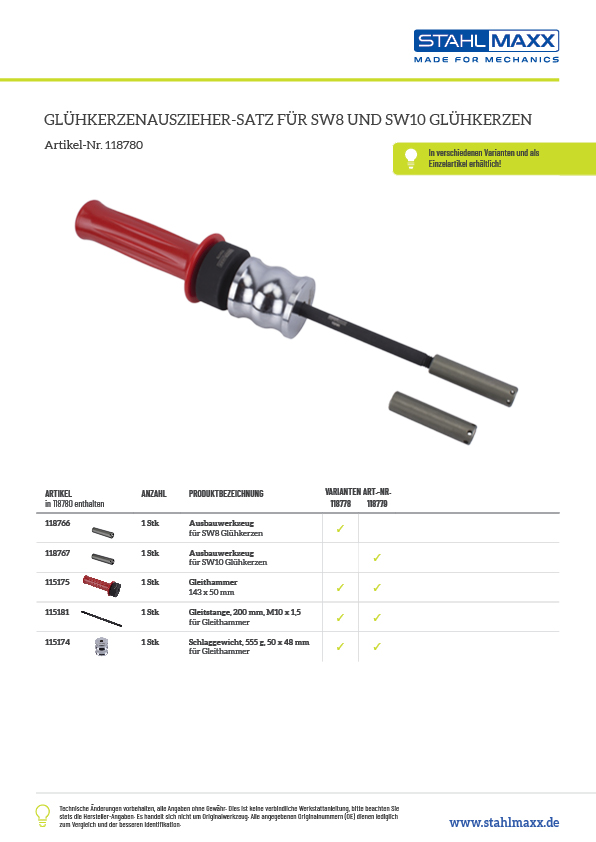 Weiterführende Links zu "Glühkerzenauszieher-Satz für SW8 Glühkerzen mit beschädigtem Gewinde"