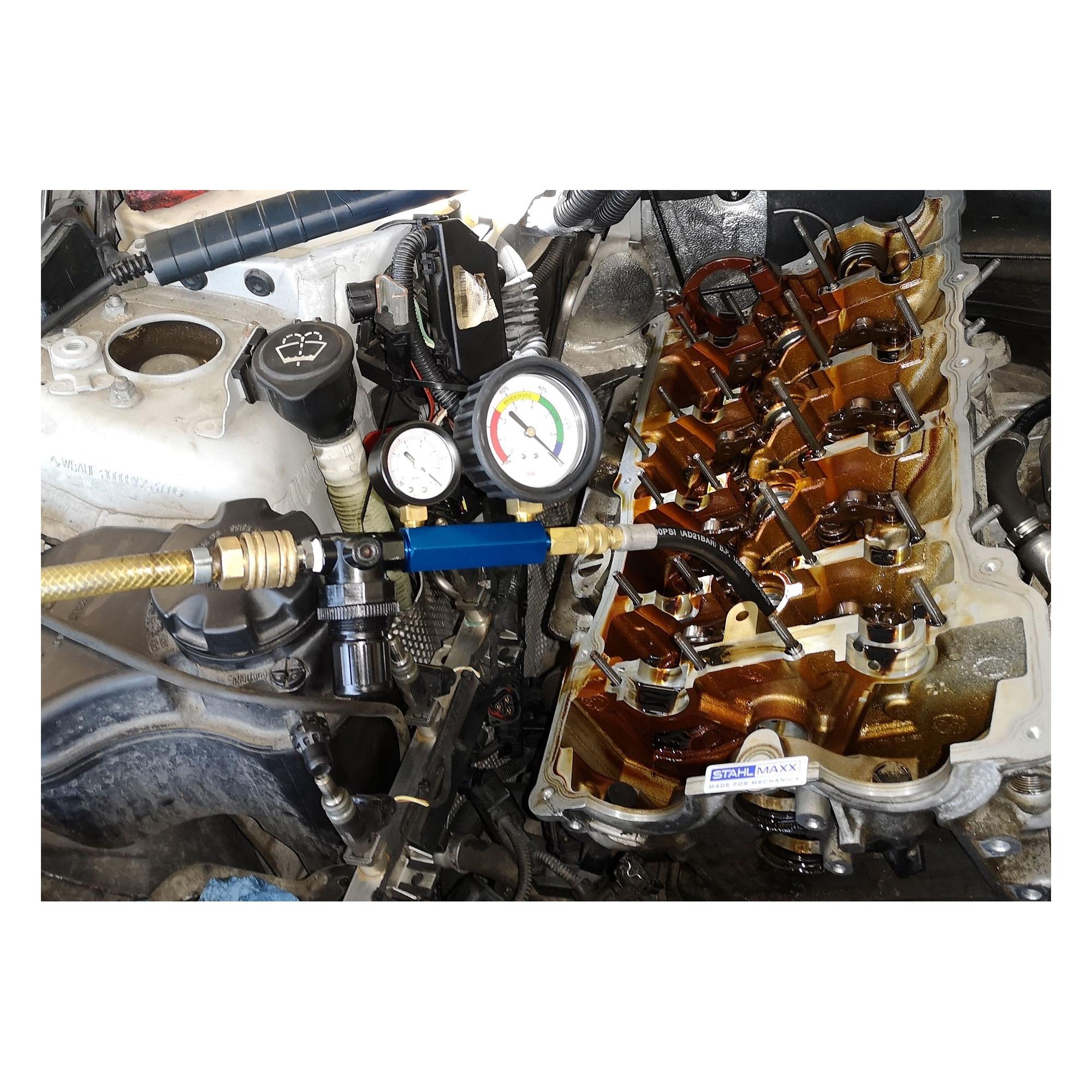 Eine weitere wichtige Möglichkeit ist die Fehlersuche und die Motor-Zustandsprüfung mittels Druckverlust-Test.