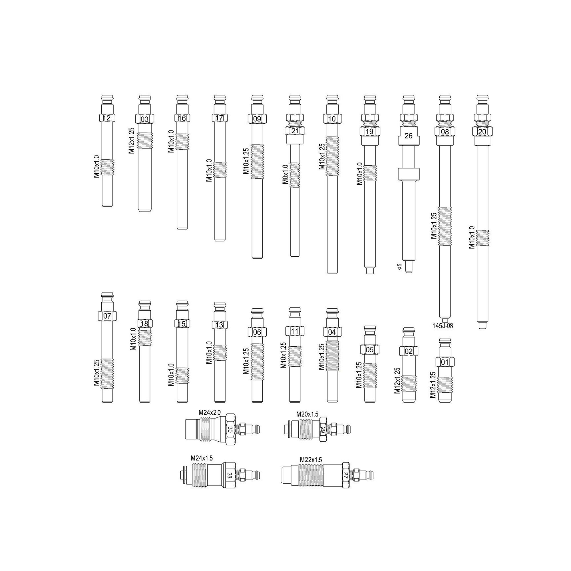 21 x Glühkerzenadapter, mit Druckausgleichsventil, zur Kompressionsmessung über den Glühkerzenschacht