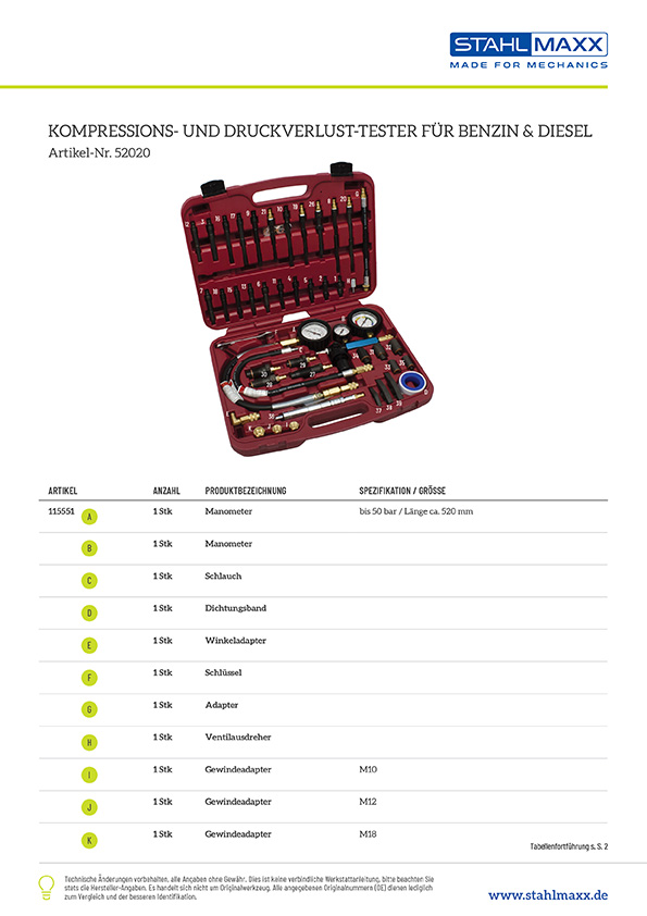 Weiterführende Links zu "Kompressions- und Druckverlust-Tester, Benzin, Diesel, über Zünd-, Glühkerzen und Injektoren"