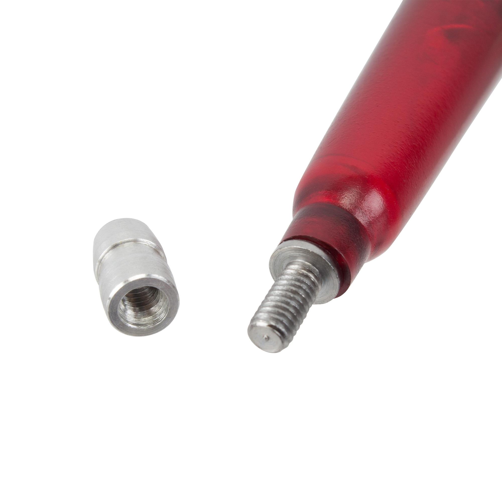 Unsere Zündfunken-Tester bieten gegenüber anderen Herstellern die Möglichkeit, auch Zündkerzen/Zündanlagen mit M4-Gewinde zu prüfen, was vor allem bei Oldtimern und neueren Kleinmotoren notwendig ist.In diesem Fall wird die SAE-Hülse vom Zündfunken-Tester abgeschraubt und auf die Zündkerze geschraubt. Sie dient nun als Adaptierung für den Steckkontakt des Zündfunkentesters. Auf das M4-Gewinde oben am Zündfunken-Tester passt nun die originale Steckverbindung des Zündkerzensteckers.