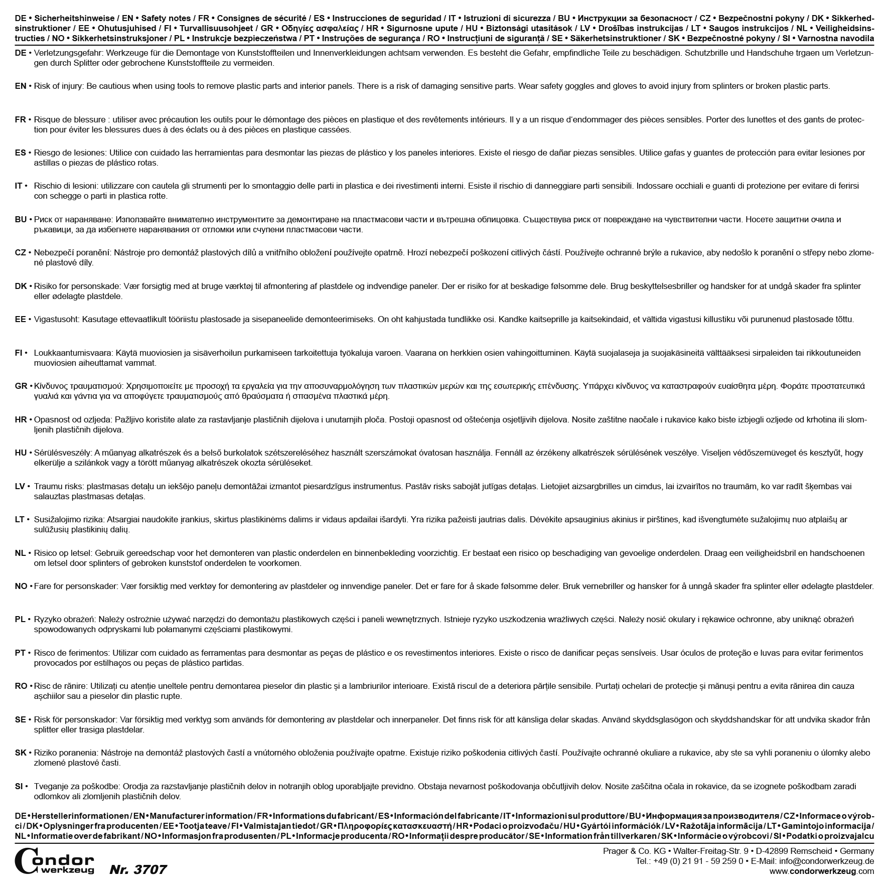 - speziell für Arbeiten an Verkleidung, Armaturenbrett, Zierleisten, Türverkleidung, Stoßstange, Rückleuchten Demontage usw.