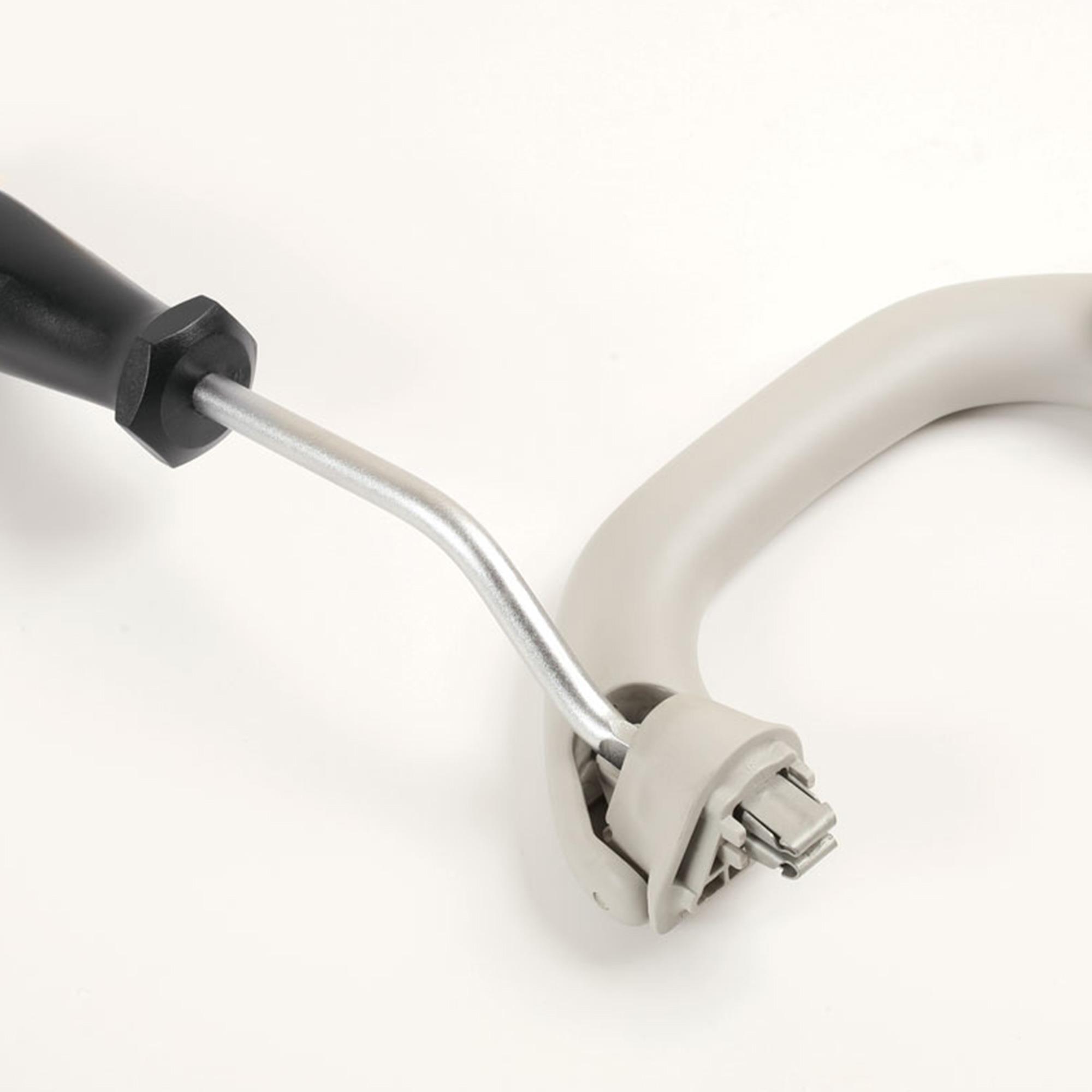Spezialwerkzeug zum beschädigungsfreien Lösen / Entriegeln des Dach-Haltegriffs im Innenraum. Ideal, wenn der Dachhimmel gelöst oder ersetzt werden muss. Das Werkzeug setzt an beiden Verriegelungen an und entriegelt die Clips sauber, ohne den Dachhimmel oder die Kunststoffaufnahmen zu beschädigen.