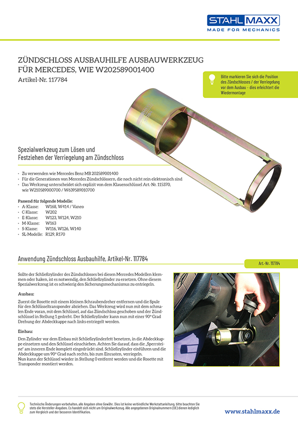 Weiterführende Links zu "Zündschloss Ausbauhilfe Ausbauwerkzeug für Mercedes, wie W202589001400"
