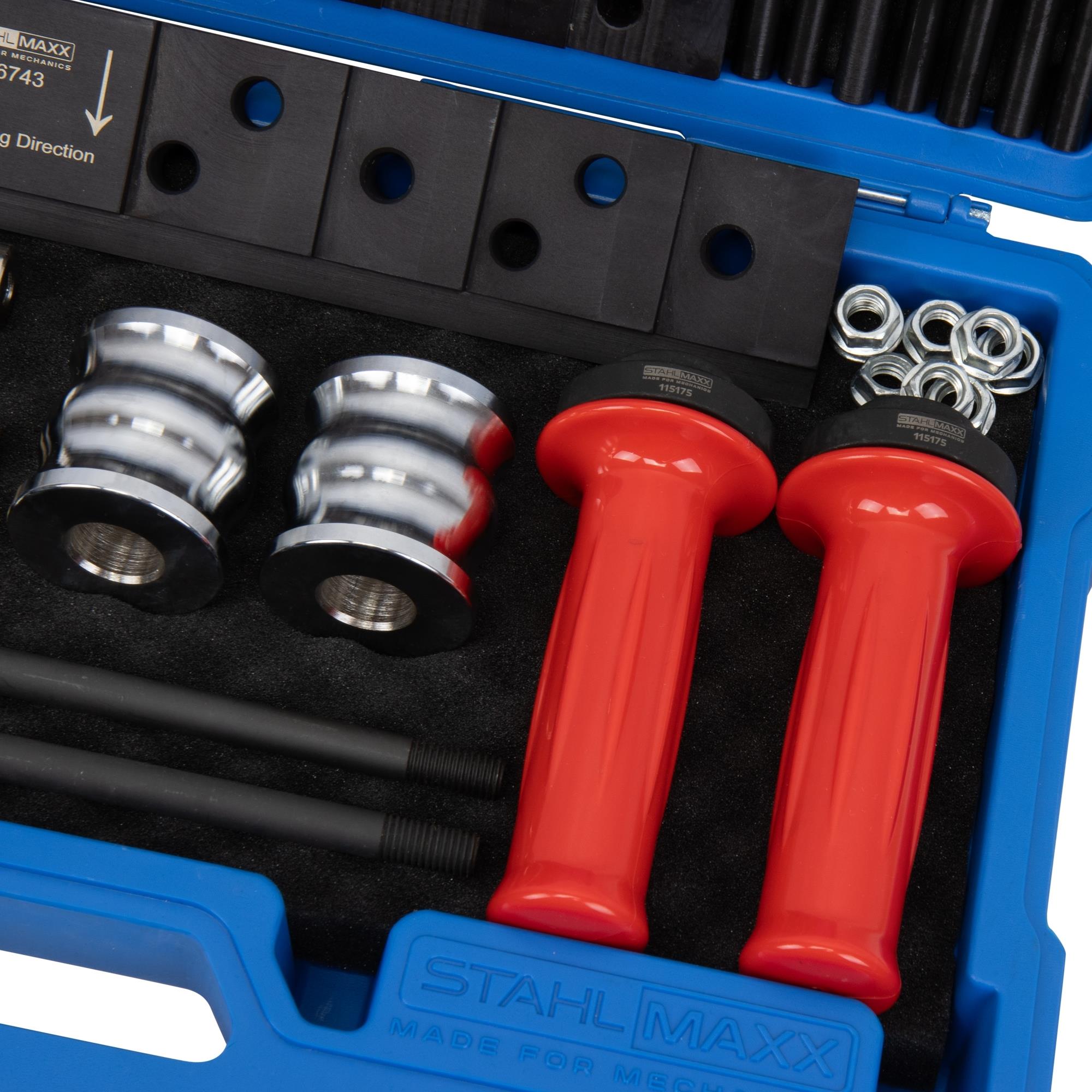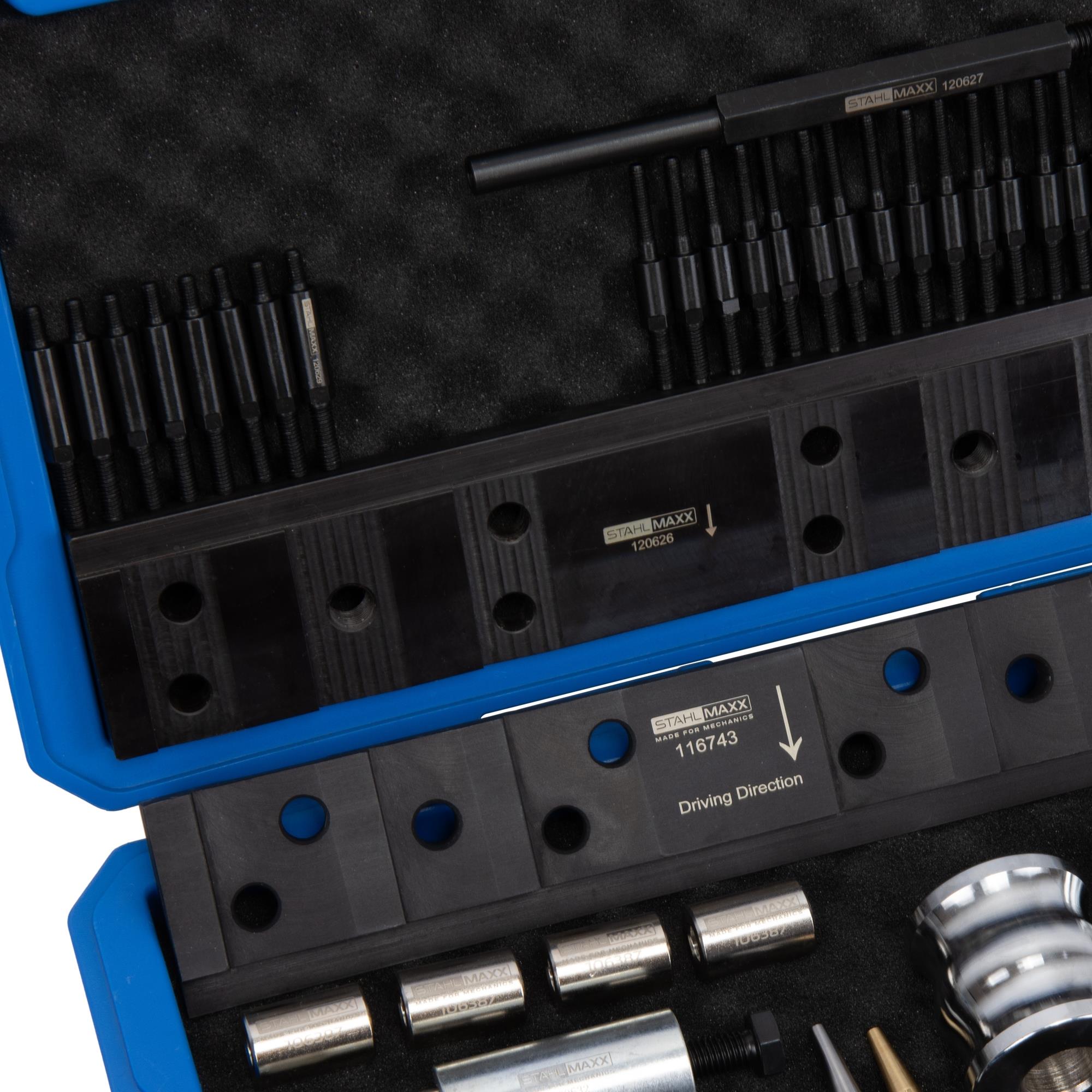 Die Kalibrierungswerkzeuge bzw. Kompressionshülsen 106387 werden auch zum Schutz der Einspritzventile genutzt. Hiermit können die Dichtringe bis zum Wiedereinbau auf Einbaumaß gehalten werden.
