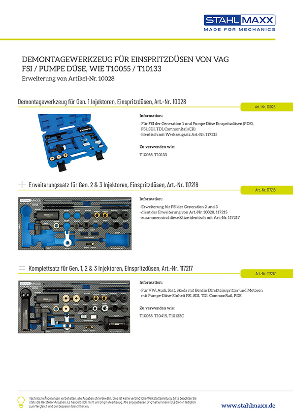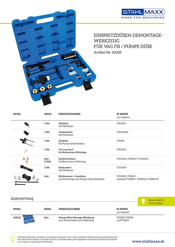 Die Original-Werkzeugnummern dienen nur zur Identifikation, es handelt sich nicht um Originalwerkzeug.