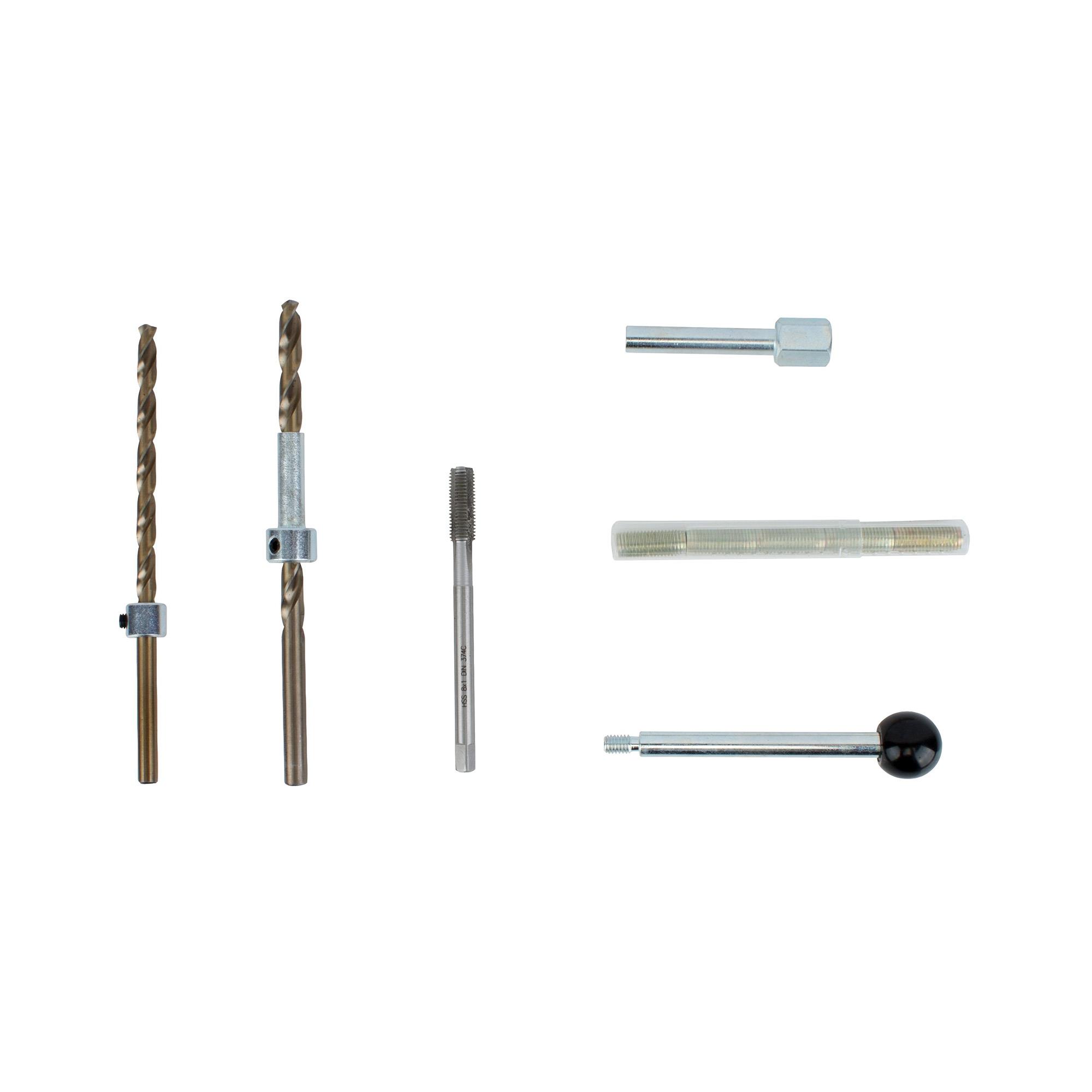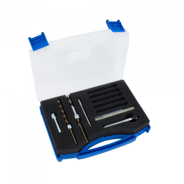 Hochwertiges Spezialwerkzeug-Set zum fachgerechten Erneuern des im Zylinderkopf befindlichen Gewinde der Injektor Halteschrauben.