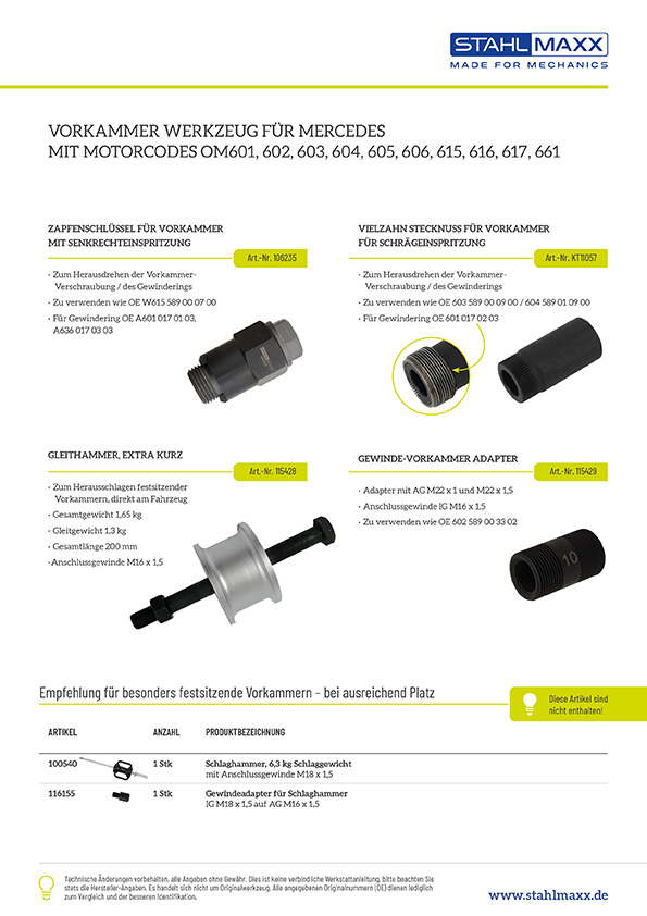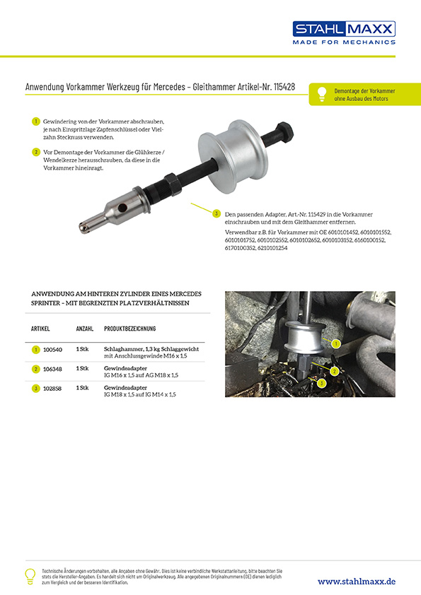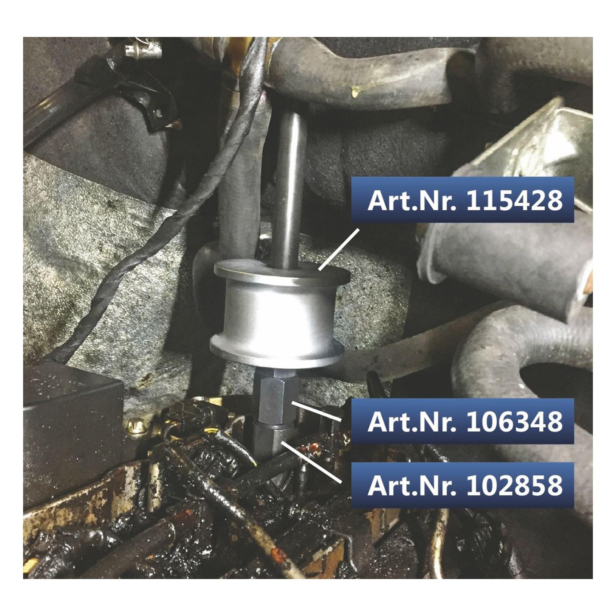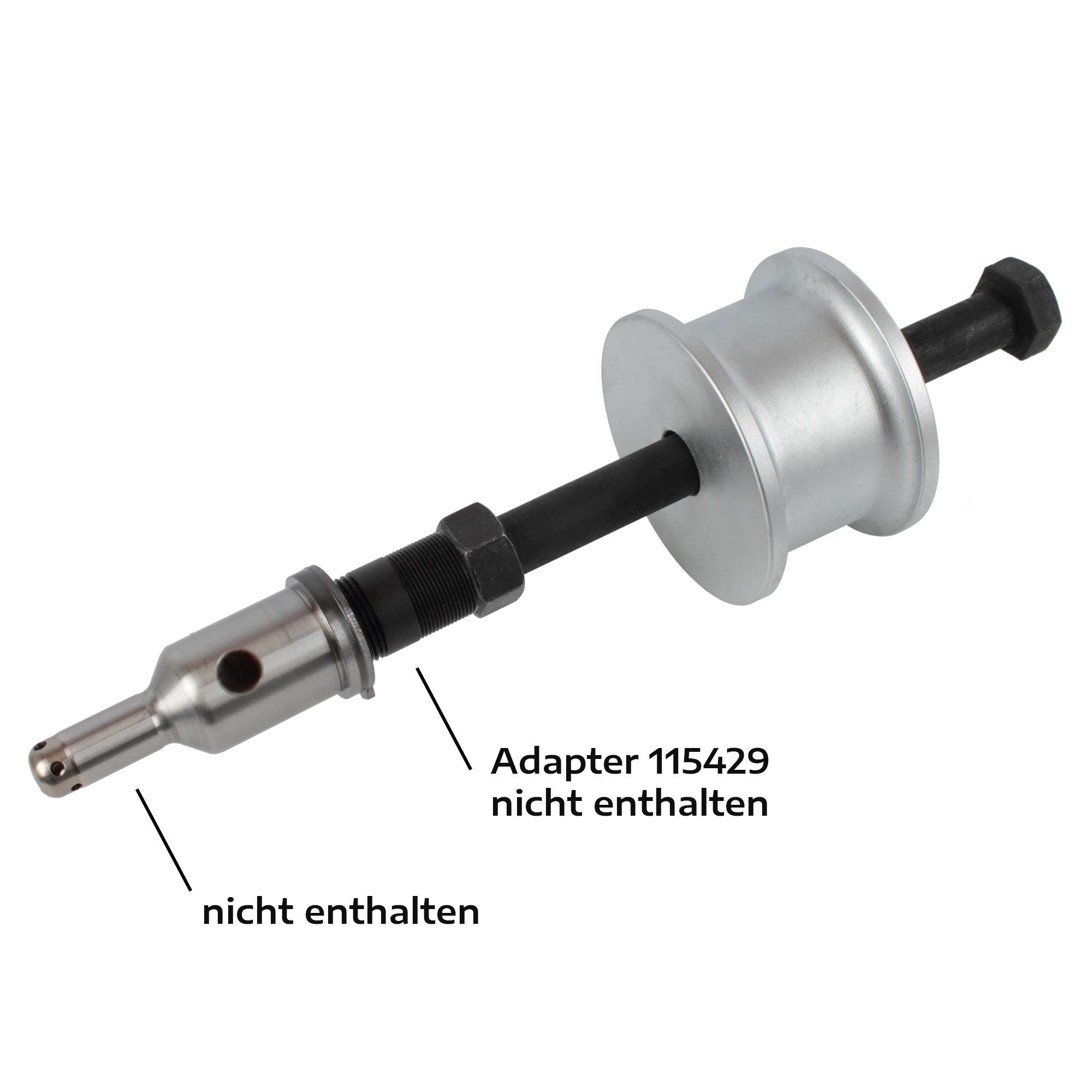 Für das Verwenden beim Injektorausbau mit engen Platzverhältnissen (z.B. Sprinter) geeignet, hierfür bitte Adapter Art.-Nr. 106348 (M16x1,5 auf M18X1,5) verwenden um alle gängigen Adapter und Krallen zu verwenden.