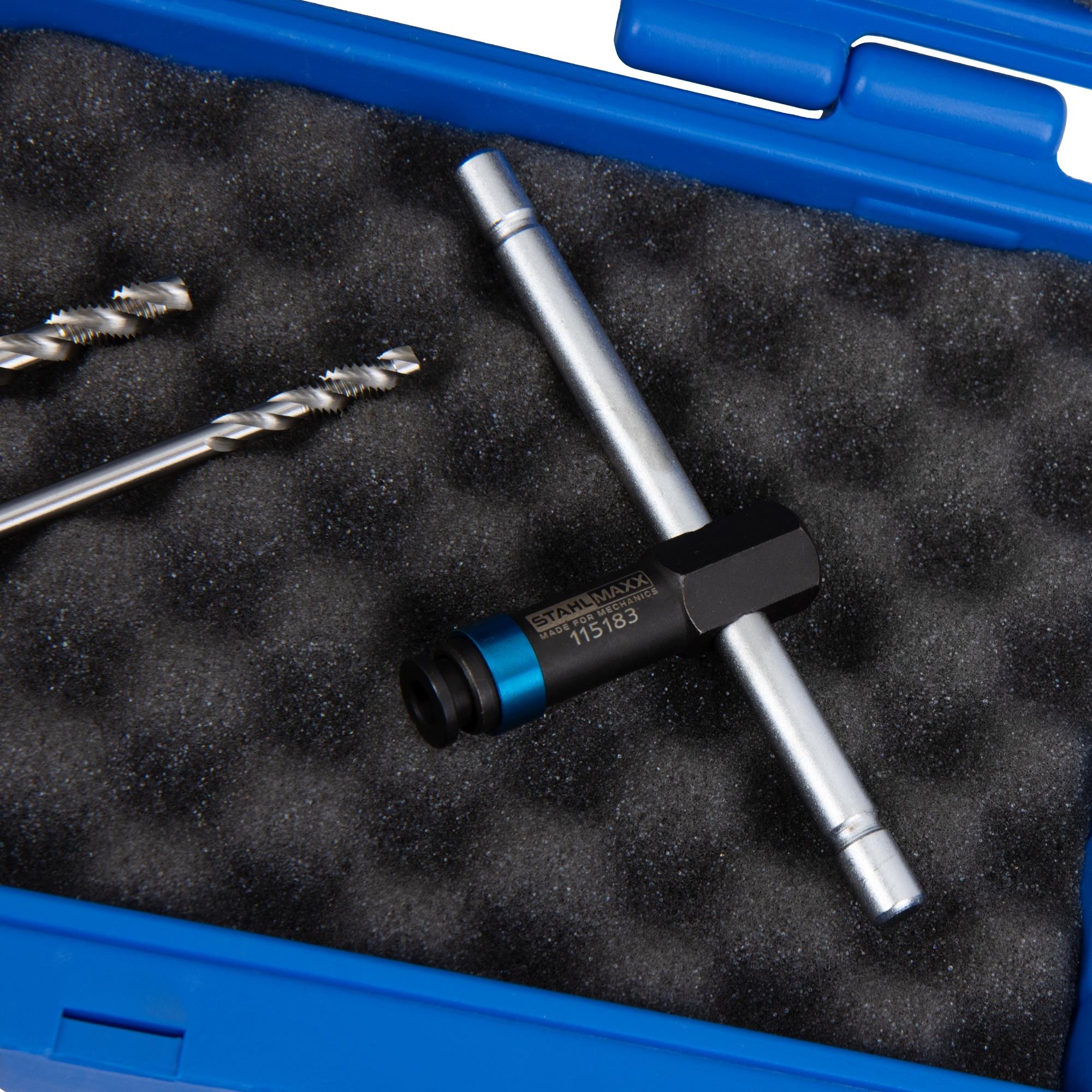 In unserem speziellen Gewindebohrer-Set liefern wir unsere einzigartige Aufnahme für Gewindeschneider mit.
