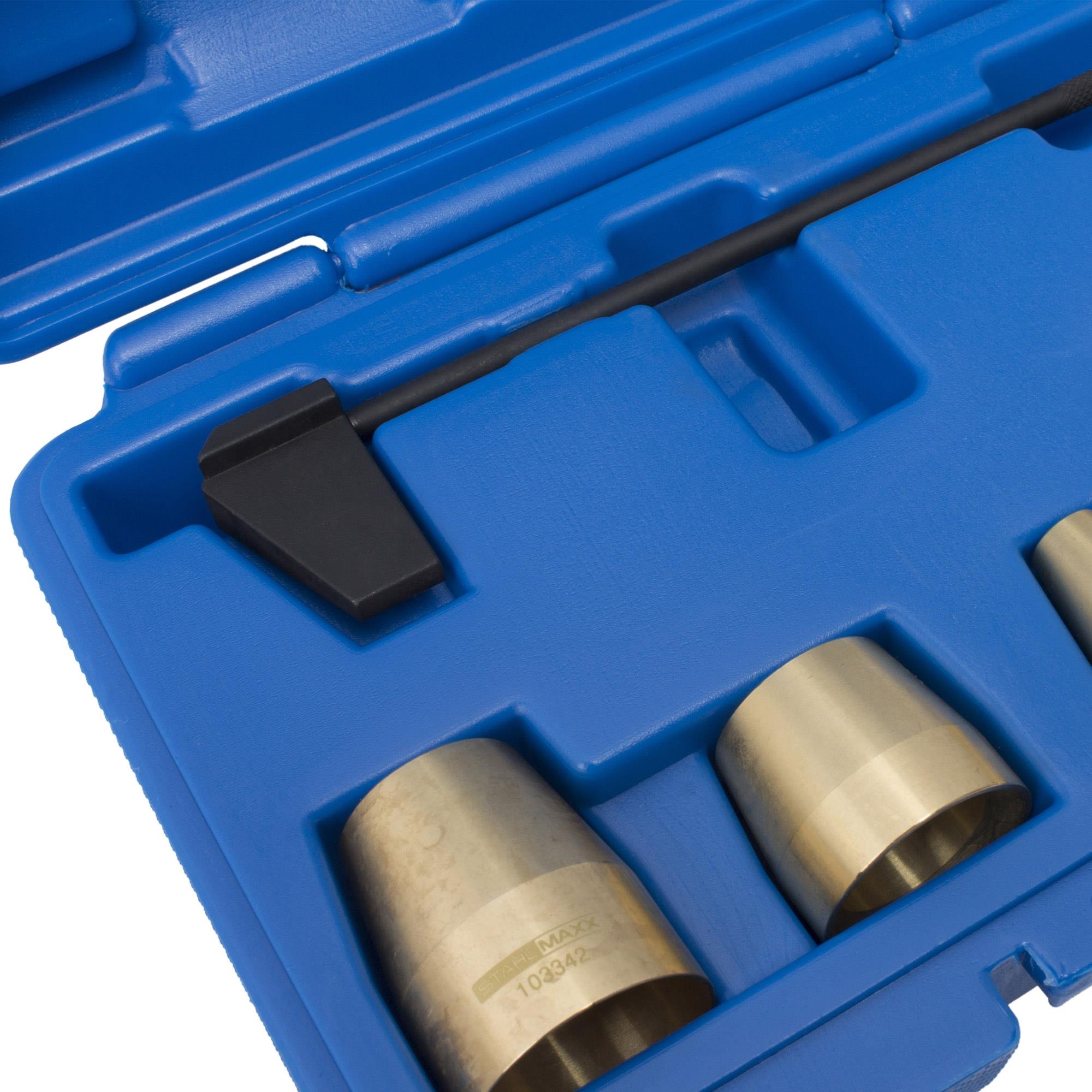 Das Set beinhaltet 3 Montagehülsen für die obere O-Ring- Montage (wie T10056), und 2 Montagehülsen für die untere O-Ring- Montage (wie T10164) der Pumpe-Düse-Einheit.