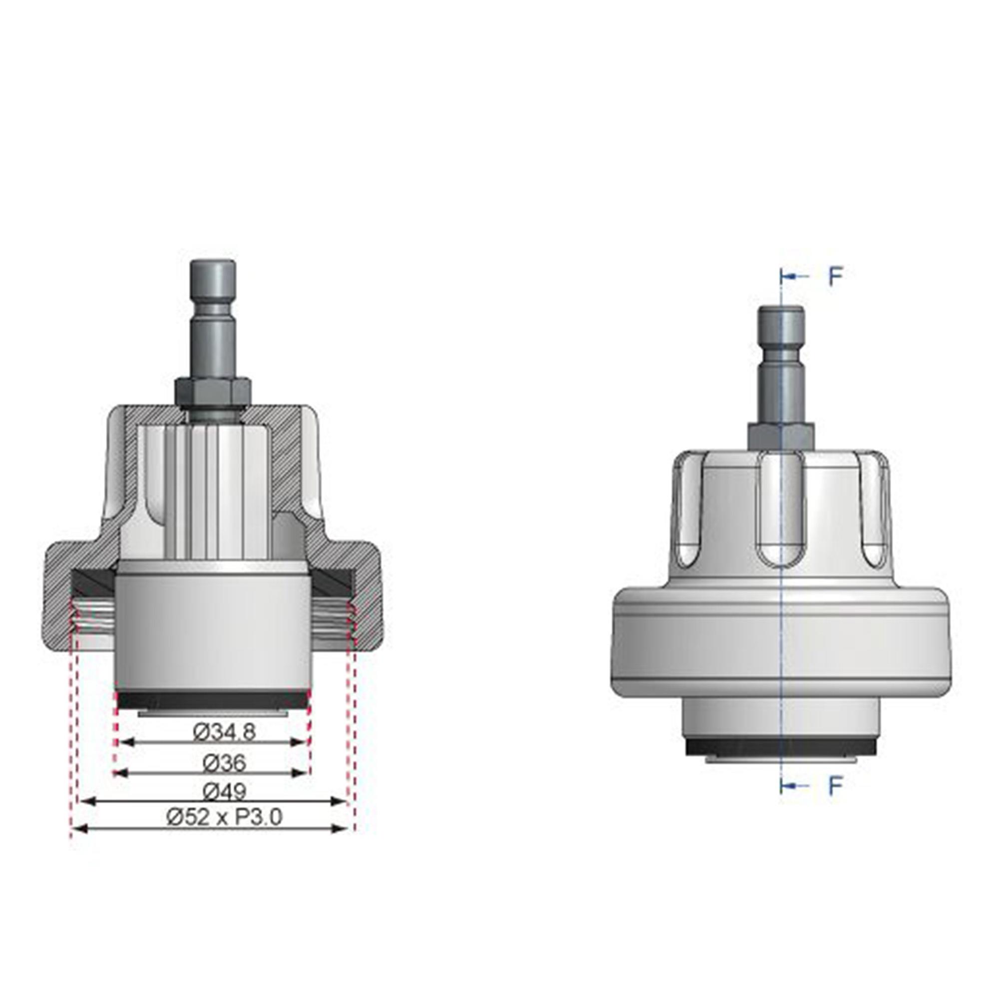 Gewindeinnenmaß am Verschlussdeckel: 49 mm