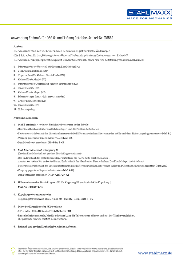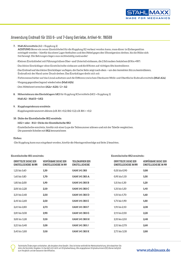Zur Einstellung der Position der Einrücklager für Kupplung "K 1" und "K 2" einstellen am 7 Gang-Doppelkupplungsgetriebe 0AM