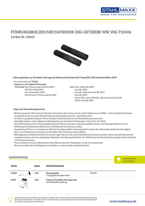 Weiterführende Links zu "Mechatronik Führungsbolzen, wie OEM VAG T10406 VW Spezialwerkzeug"