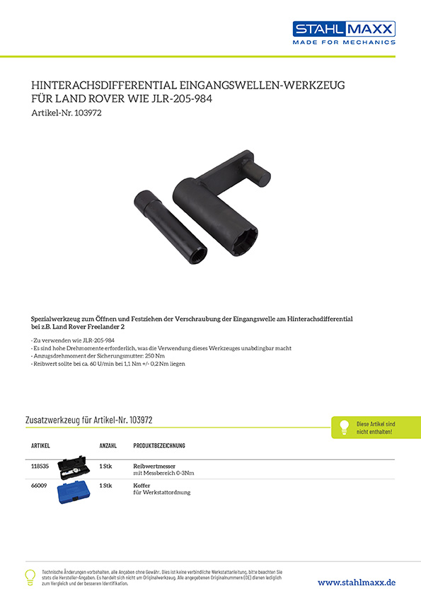 Weiterführende Links zu "Hinterachsdifferential-Eingangswellen-Werkzeug, für Land Rover"