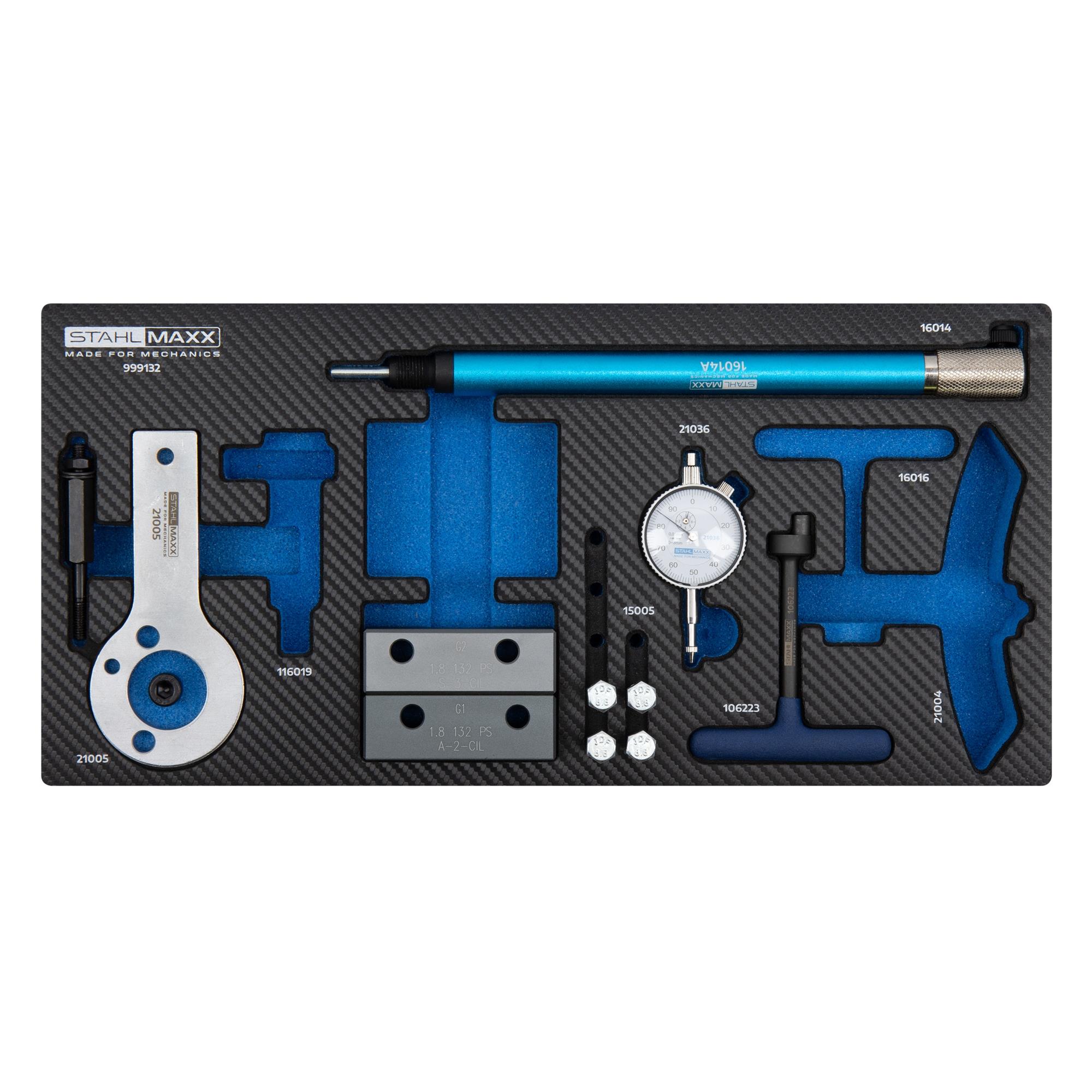 Dieses Werkzeug benötigen Sie für Instandsetzungsarbeiten im Bereich der Motorsteuerung bei den unten aufgeführten Fiat-Motoren Der professionelle Spezialwerkzeugsatz wird in einem robusten Koffer mit einer abwischbaren Schaumstoffeinlage in Carbon-Optik geliefert. Die Schaumstoffeinlage ist ebenfalls für alle gängigen Werkstattwagen geeignet.