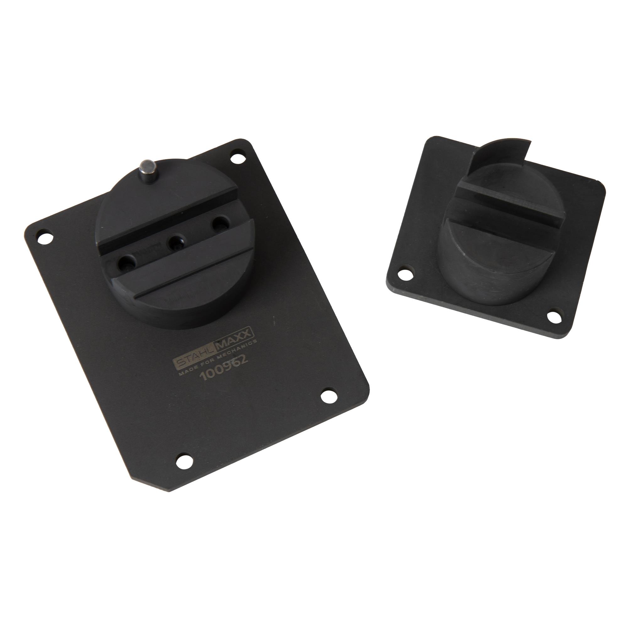 Spezialwerkzeug zur Fixierung der Aus- und Einlassnockenwelle an der 1,75L / 1,8L TBi / Di Motorengeneration von Alfa Romeo, Fiat und Lancia. Die Nockenwellenwerkzeuge werden getriebeseitig, anstelle von Verschlussdeckeln eingebaut.