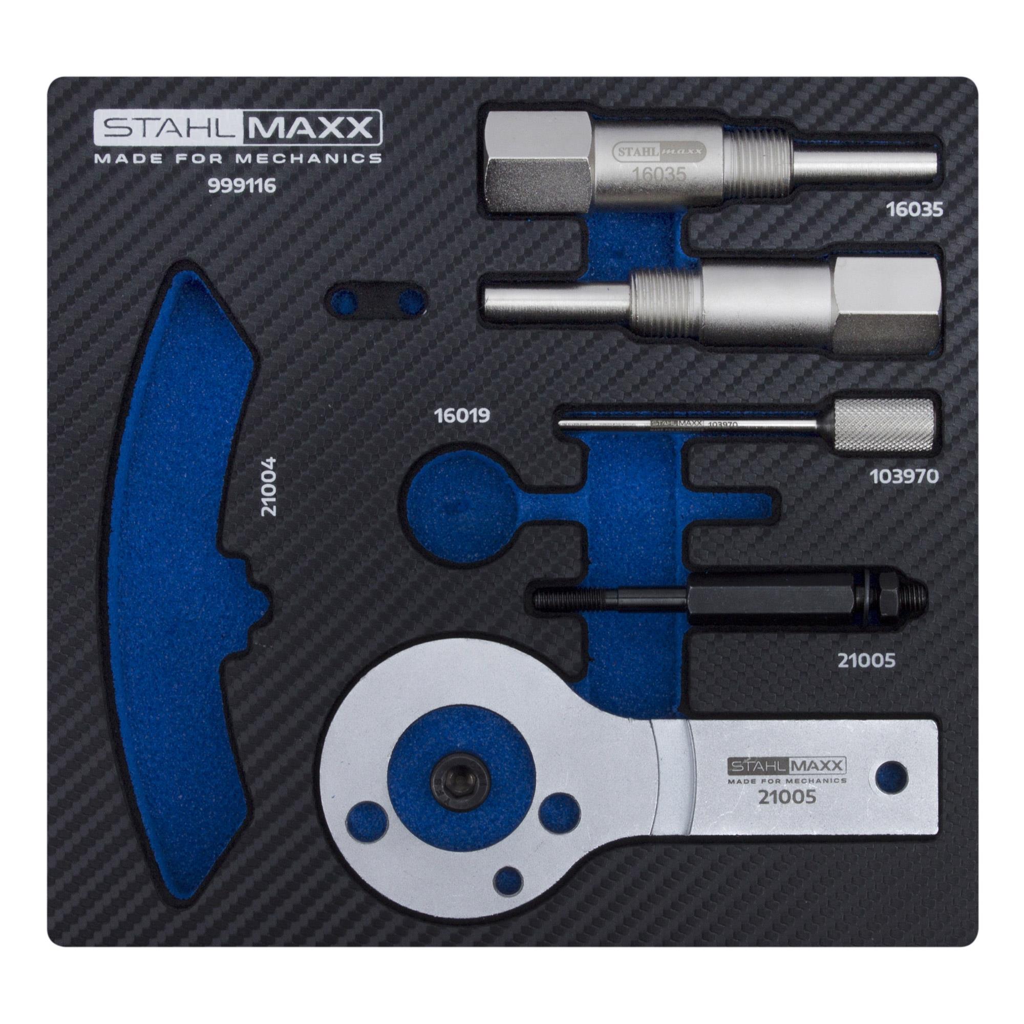 Für Instandsetzungsarbeiten im Bereich der Motorsteuerung bei den unten aufgeführten Motoren von Alfa, Fiat, Opel und Suzuki. Der Werkzeugsatz wird durch einen stabilen Koffer und eine Schaumstoffeinlage in Carbon-Optik geschützt. Diese Schaumeinlage ist ebenfalls für gängige Werkstattwagen geeignet und beinhaltet professionelles Spezialwerkzeug zum Vorspannen der Spannrolle, Arretieren der Nockenwelle, Fixieren der Kurbelwelle, etc.