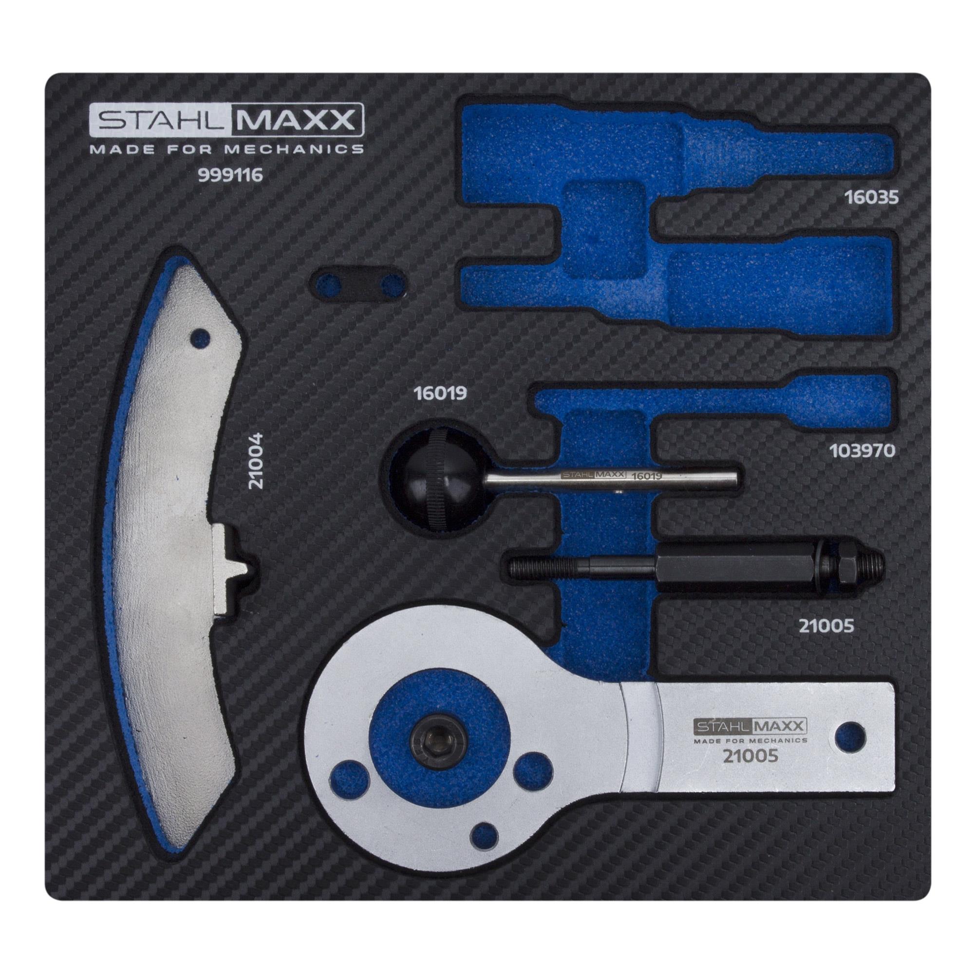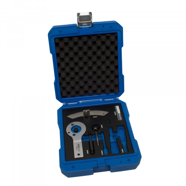 Dieses Werkzeug benötigen Sie für Instandsetzungsarbeiten im Bereich der Motorsteuerung bei den unten aufgeführten Motoren von Alfa, Lancia und Suzuki. Der professionelle Spezialwerkzeugsatz wird in einem robusten Koffer mit einer Schaumstoffeinlage in Carbon-Optik geliefert, die zudem passgenau für gängige Werkstattwagen ist. Dieser enthält Werkzeuge zur Nockenwellenarretierung, Kurbelwellenarretierung, Schwungradarretierung etc.
