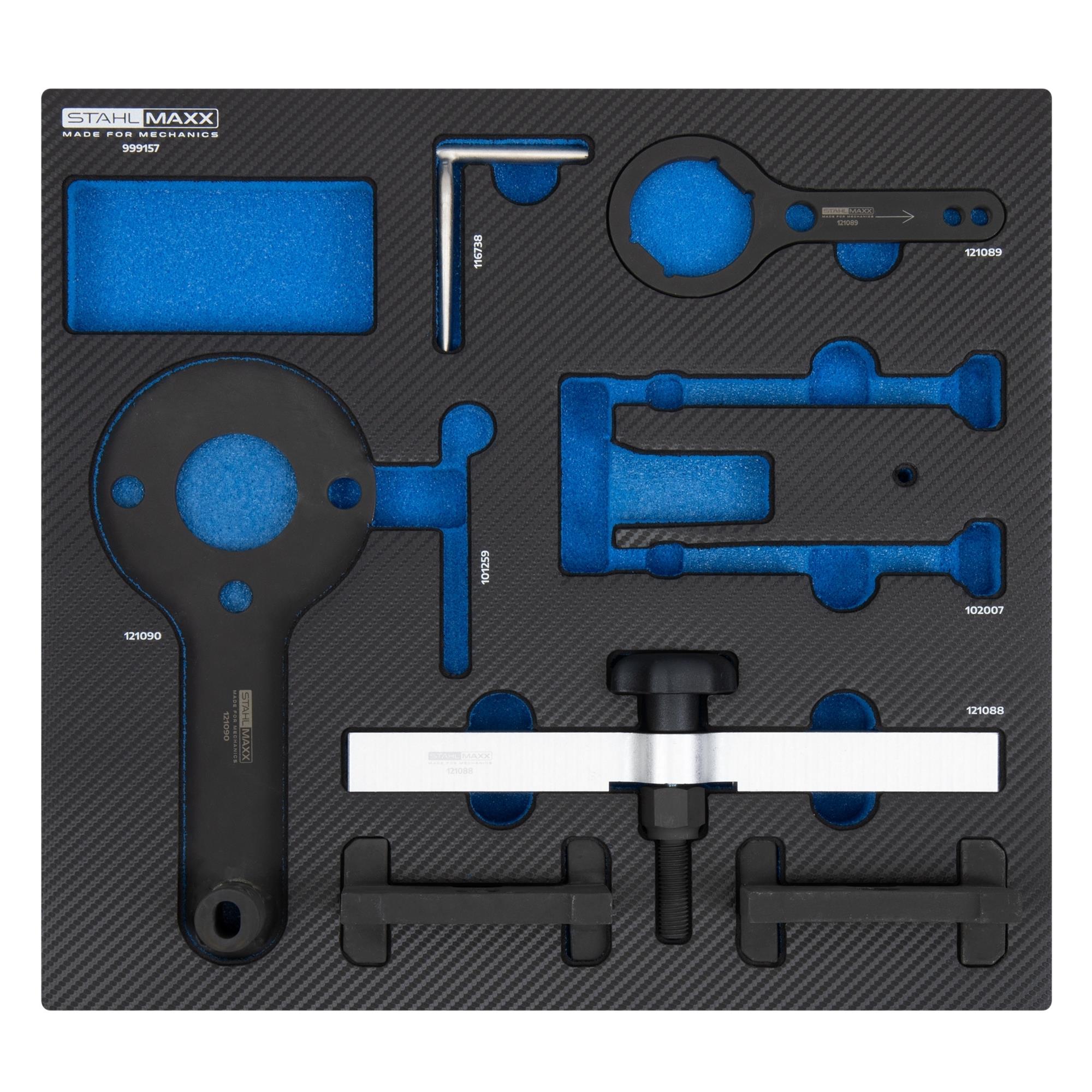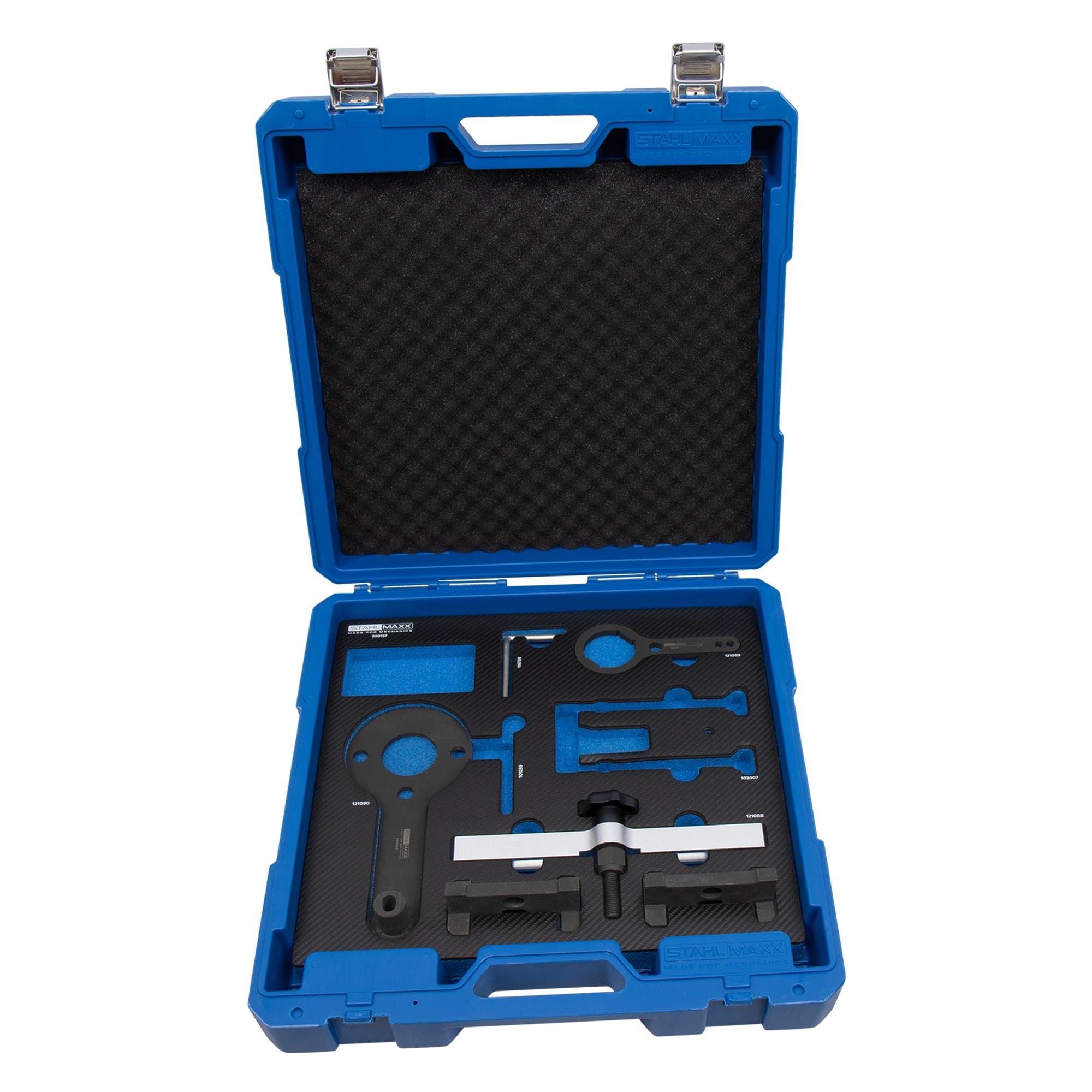 Dieses Werkzeugset erhalten Sie auch ohne das Steuerketten-Vorspannwerkzeug und die Kettenspanner-Absteckstifte unter der Art.-Nr. 999157-1