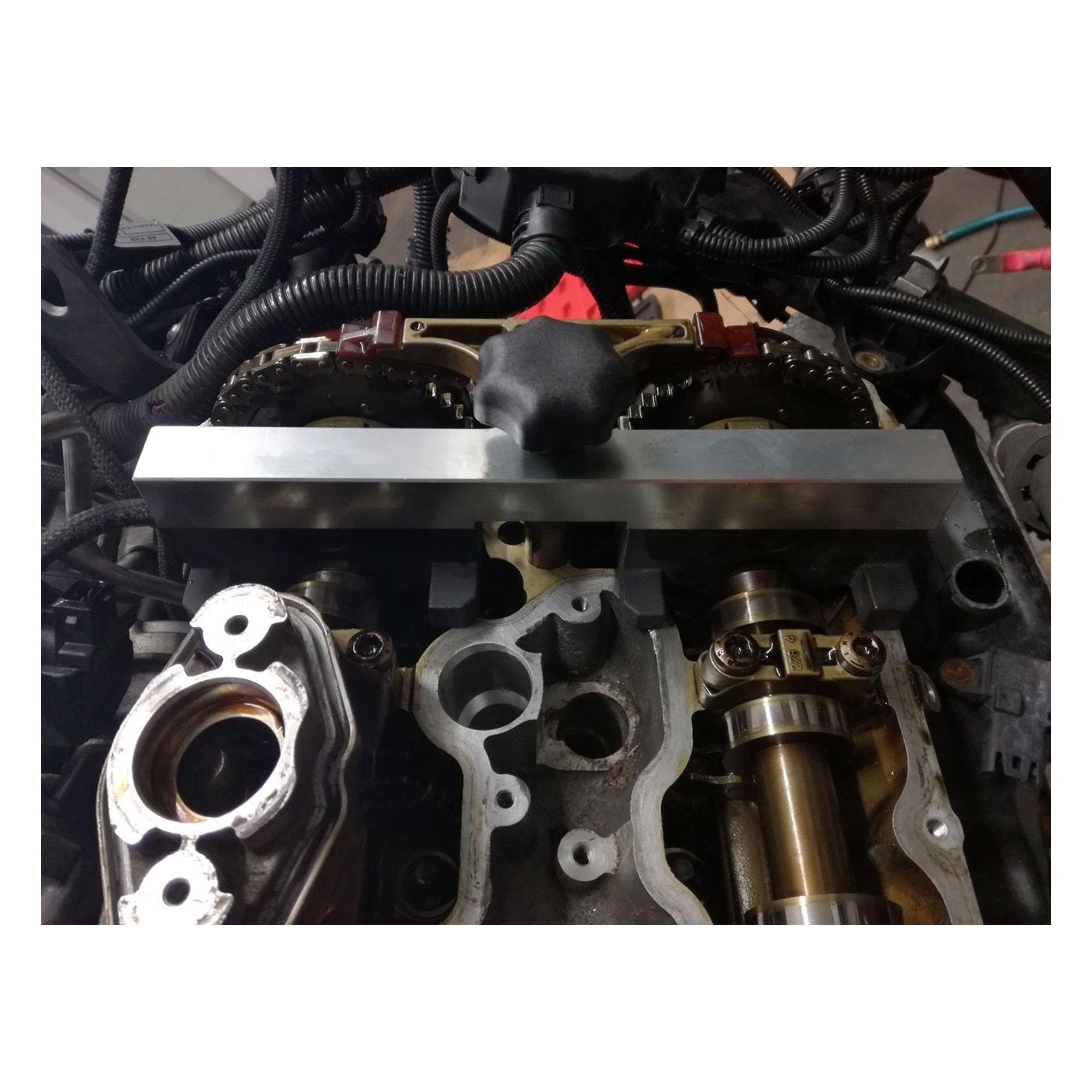 In diesem Komplettsatz sind alle notwendigen Komponenten zum Arretieren der Nockenwelle, der Kurbelwelle und das Steuerketten-Vorspannwerkzeug für diese 4.4, 6.0, 6.6 und 6.8 L V8- und V12-Benzinmotoren enthalten. Der Steuerkettentrieb und der Einstellvorgang ist auf Bank 1 und Bank 2 identisch, der Einstellvorgang wird für jede Bank einzeln vorgenommen.