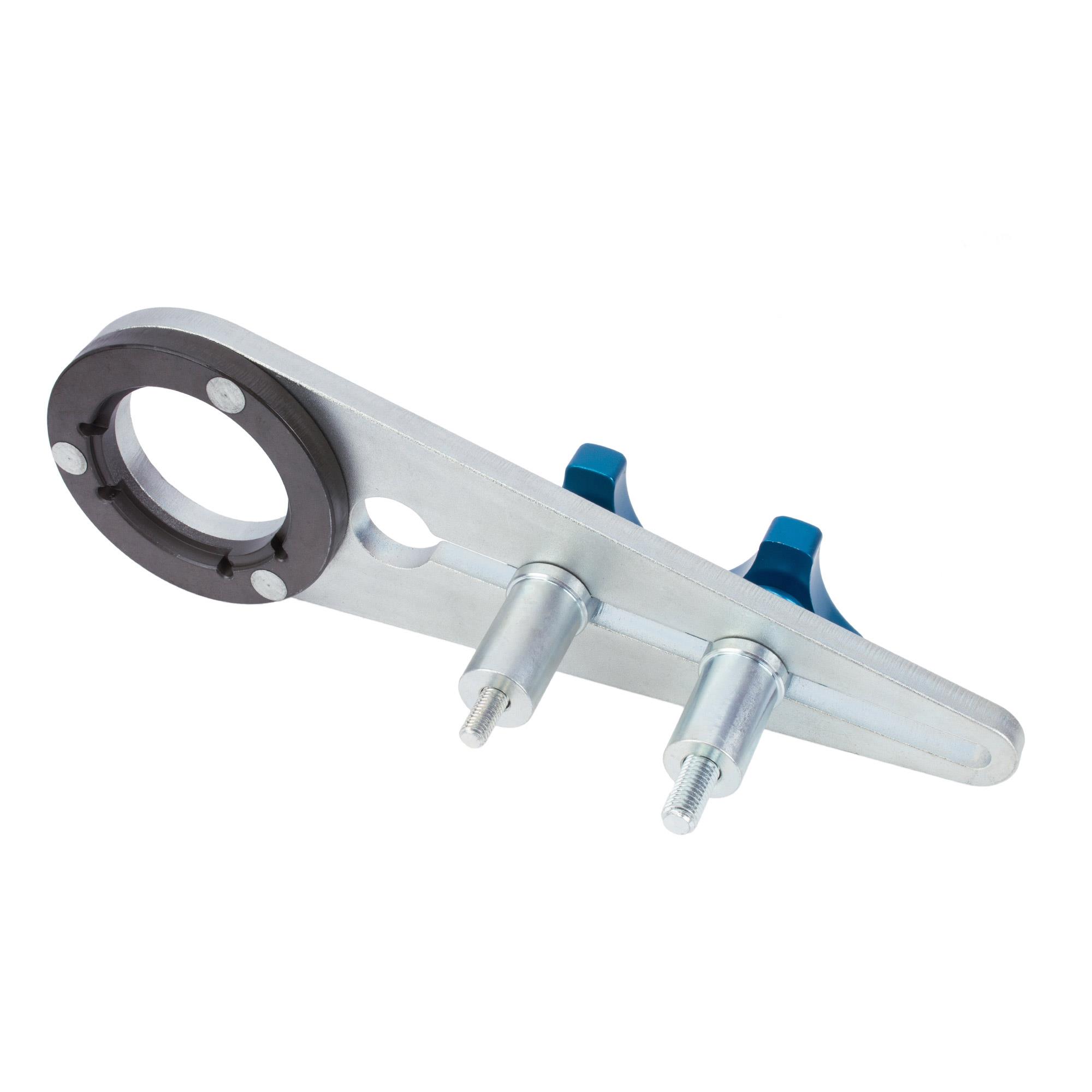 Dieser Gegenhalter für den Schwingungsdämpfer an der Kurbelwelle dient zum Halten der Riemenscheibe beim Lösen der vier E-Profil Schrauben. Er wird vorrangig bei BMW / Mini – N47 / N47S / N57 Motoren eingesetzt, um die erforderlichen Drehmomente übertragen zu können.