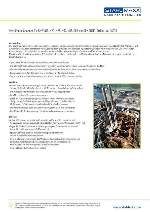 Weiterführende Links zu "Ventilfeder-Spanner, 58 mm, für BMW N13, N20, N26, N52, N55, S55, wie OEM 117110"